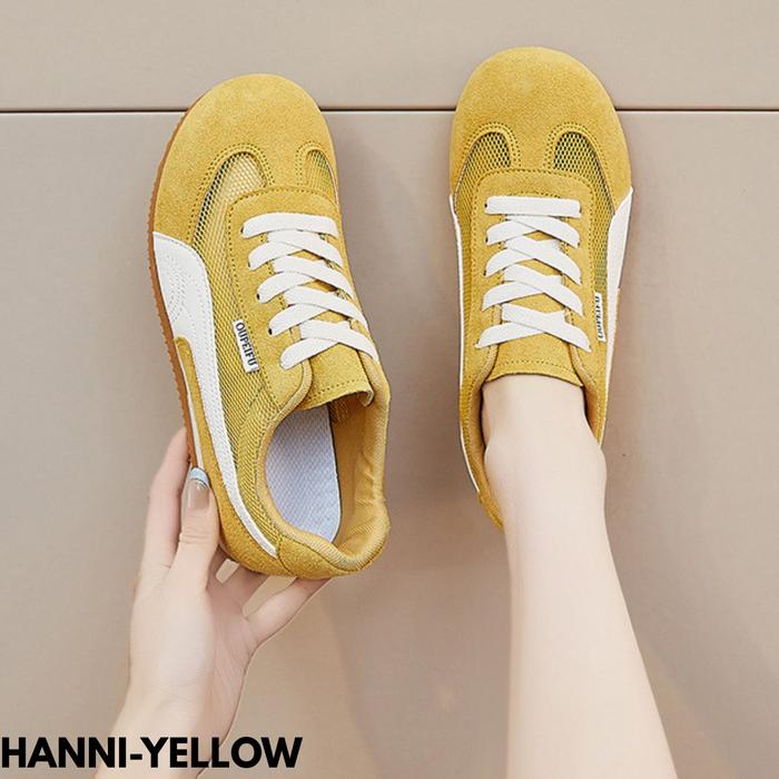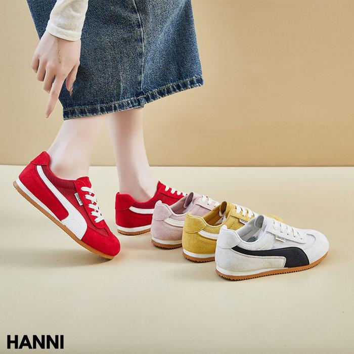 Sepatu Sneakers Wanita Casual Kekinian Design Simple Bahan PU Kombinasi Mesh Hanni - Red 38