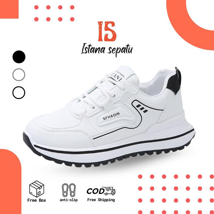 Istana Sepatu "Free Box" Size (36 - 42) Sepatu Sneakers Wanita Fashion Korea Casual Shoes Trendy 9006 - GREY 36