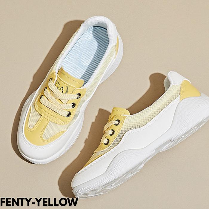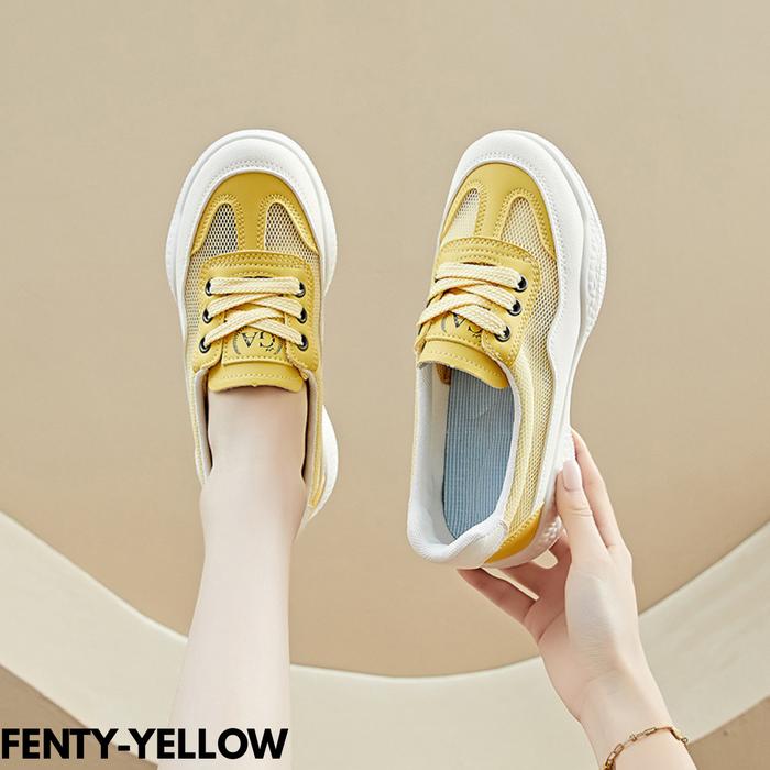 Sepatu Sneakers Wanita Warna Soft Desain Minimalis Cocok Untuk Tampilan Santai Bahan Pu Fenty - Yellow 36