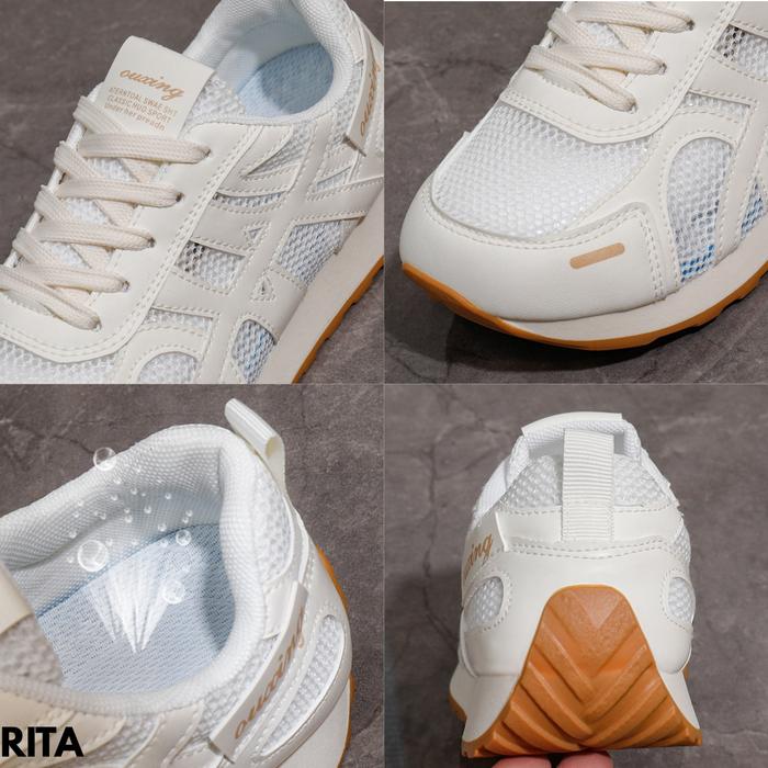 Sepatu Sneakers Wanita New Arrival Cantik Keren Bahan Pu Kombinasi Mesh Rita - Beige 36