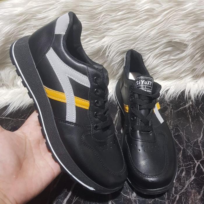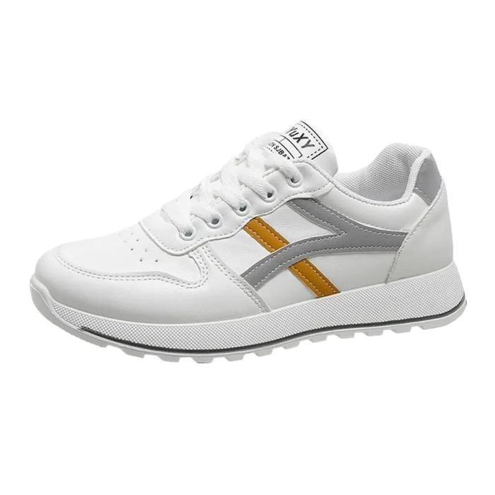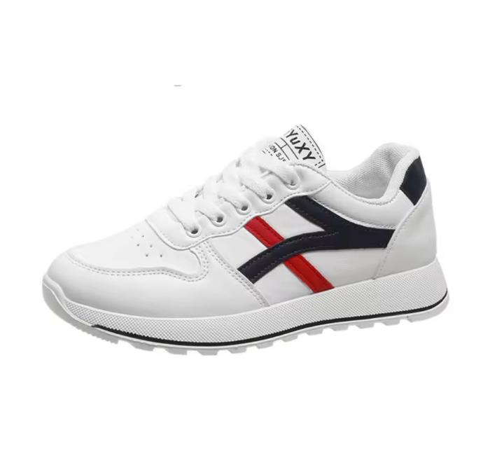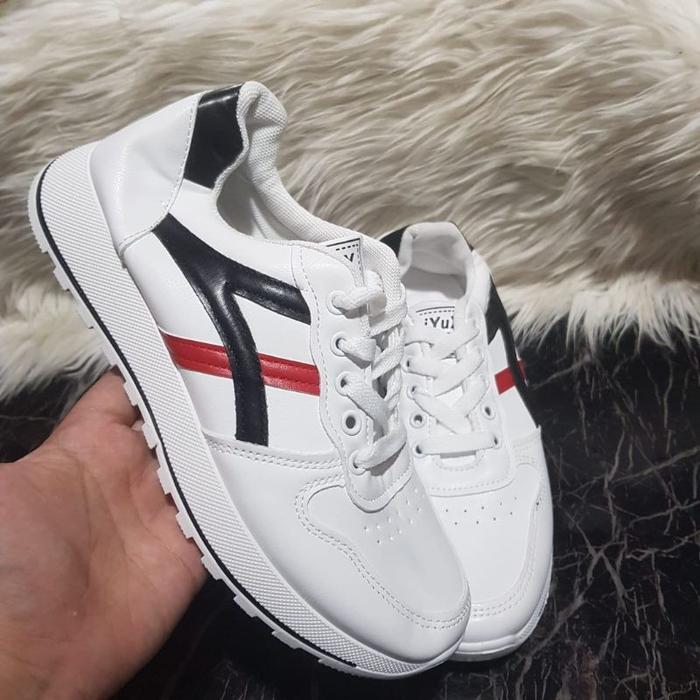 { FreeBox } Sepatu Wanita Sneakers Sport OnitSK Import Kasual Shoes Putih - Putih Garis HItam Merah 37