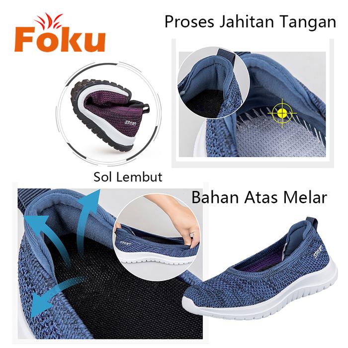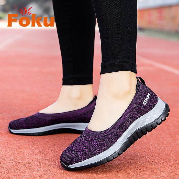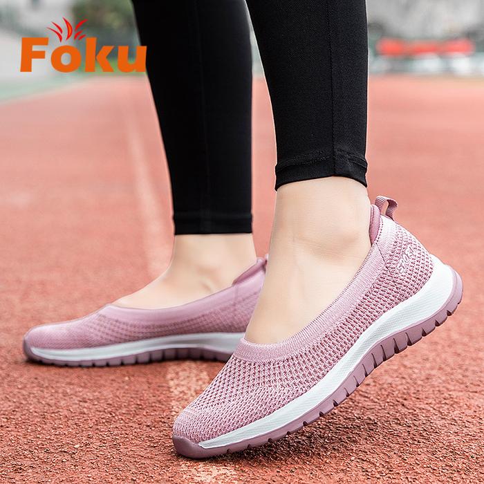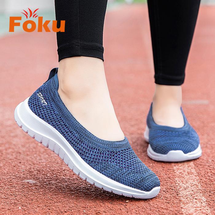 FOKU Sepatu Wanita Santai Sepatu Sneakers Wanita Sepatu Slip On Wanita Terbaru - Gray 36