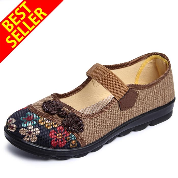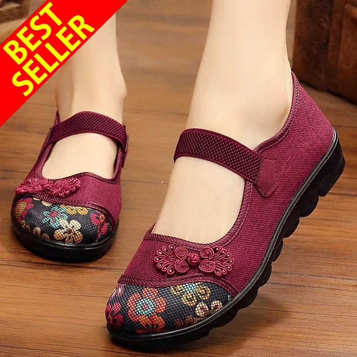 GRX QINGSHUI Sepatu Wanita Dewasa Terbaru Sepatu Wanita Terbaru Sepatu Berjalan Slip on Wanita Coklat Karet - Red 36