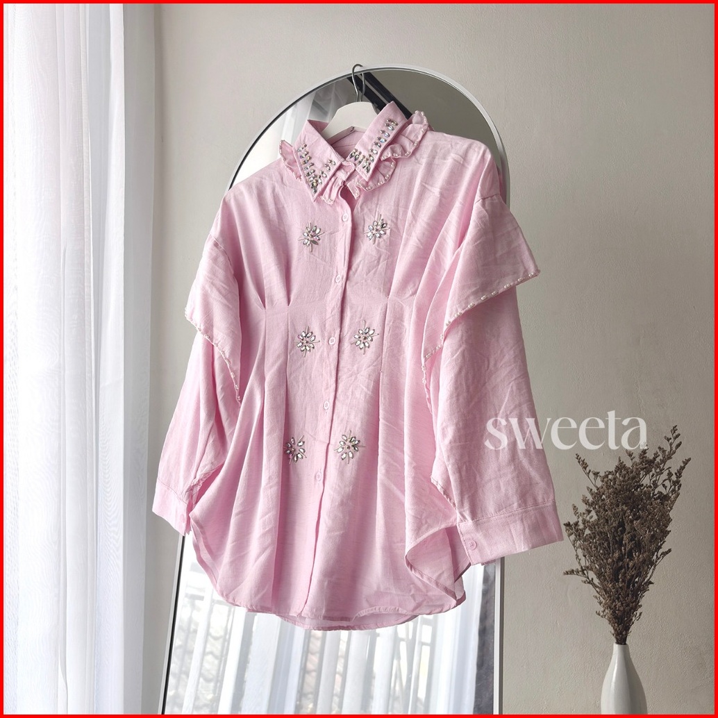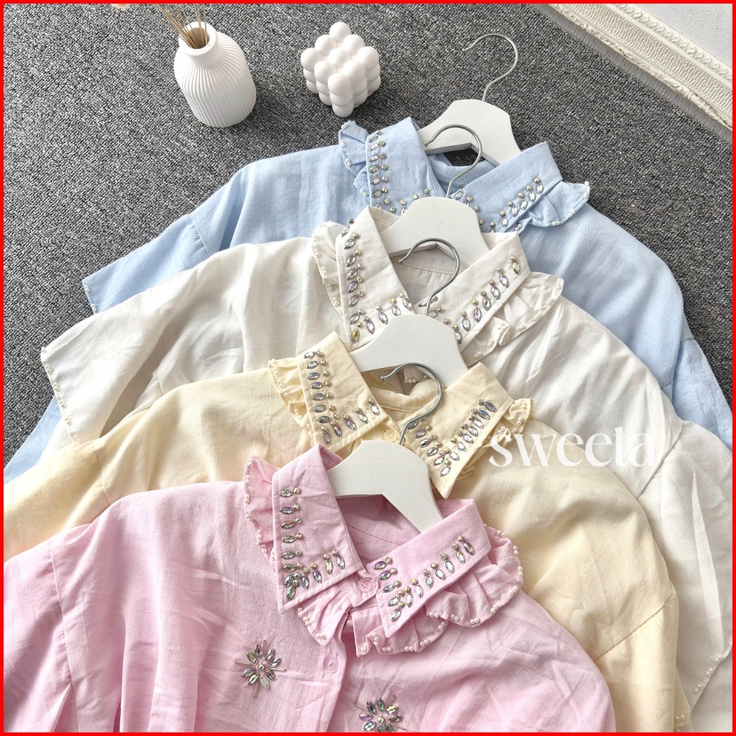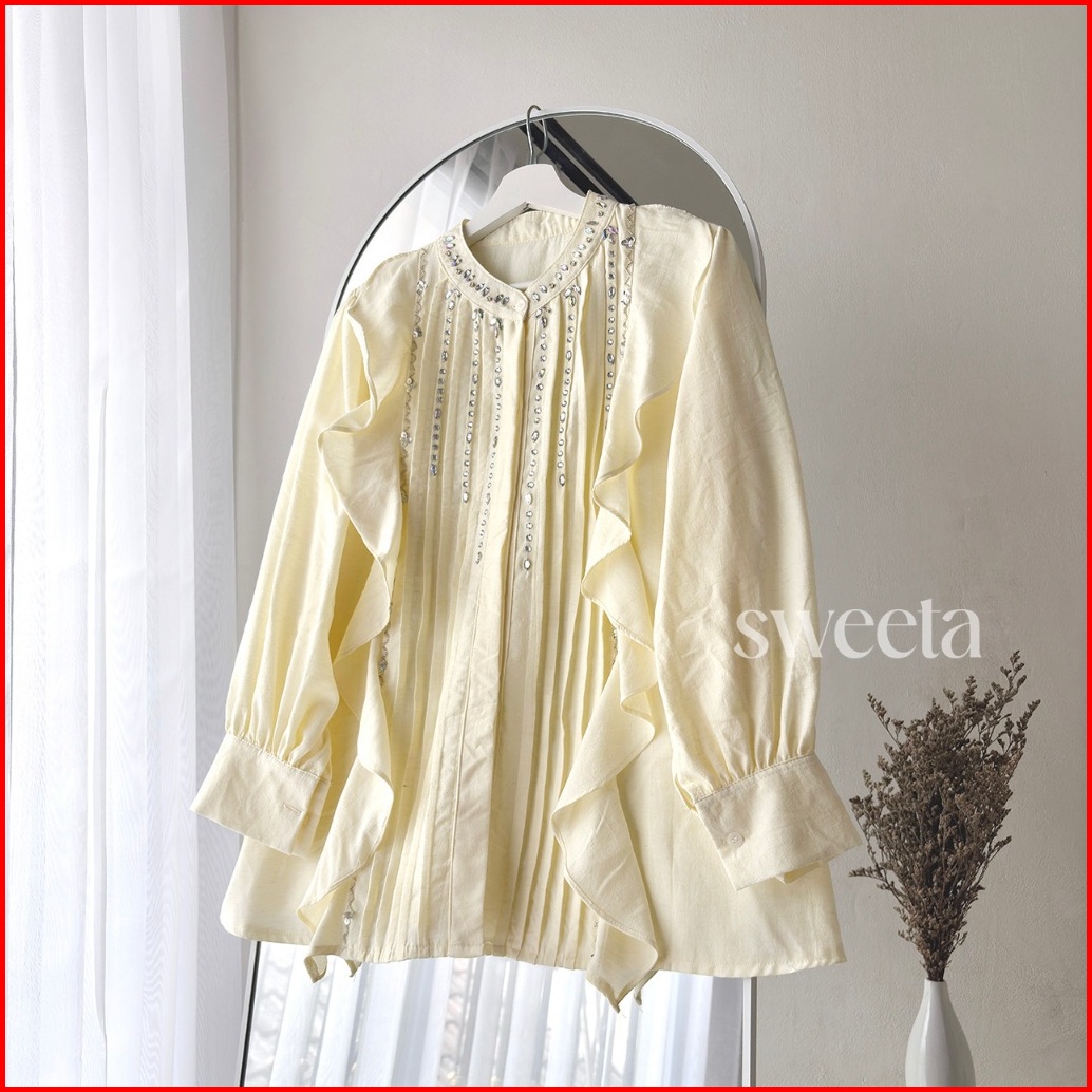 Sweeta Pearl Blouse Ruffle And Shirt Payet Mutiara Katun Ld 105 - 110 Atasan Wanita