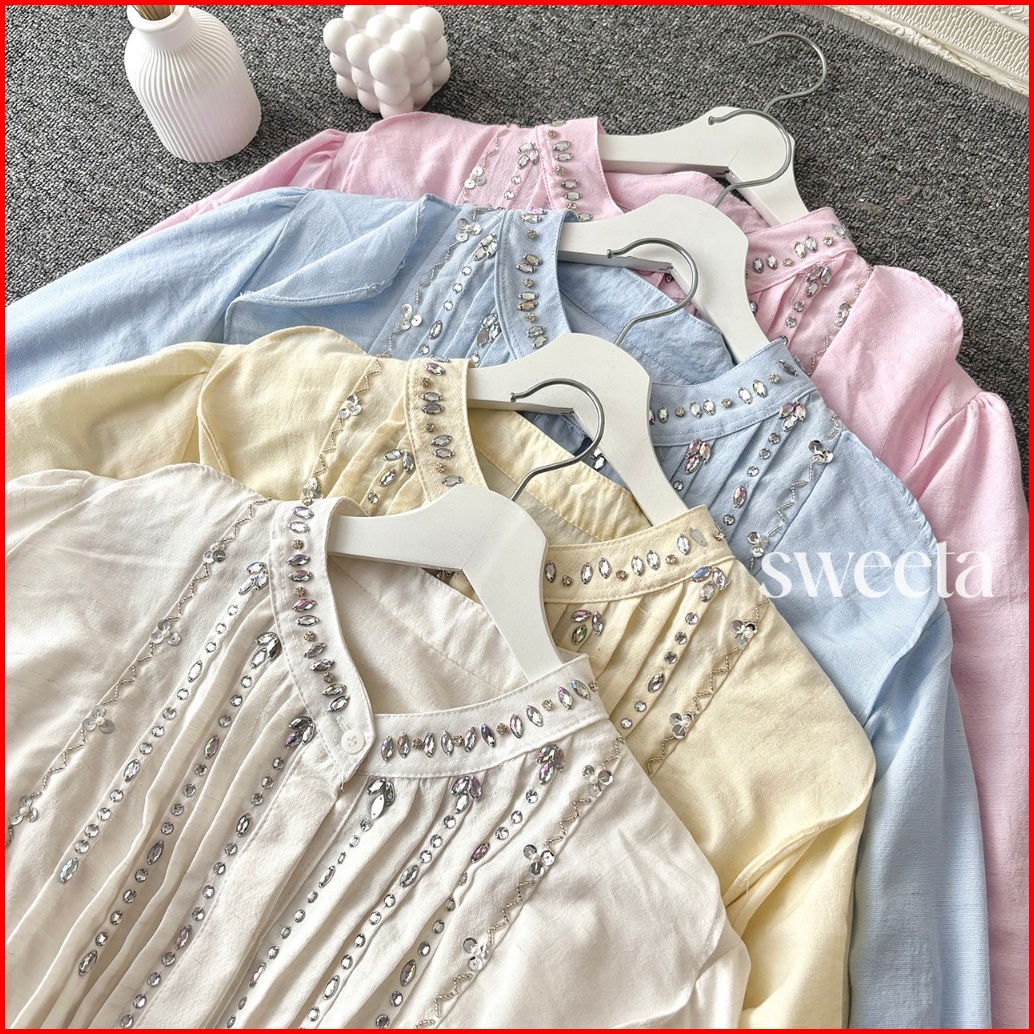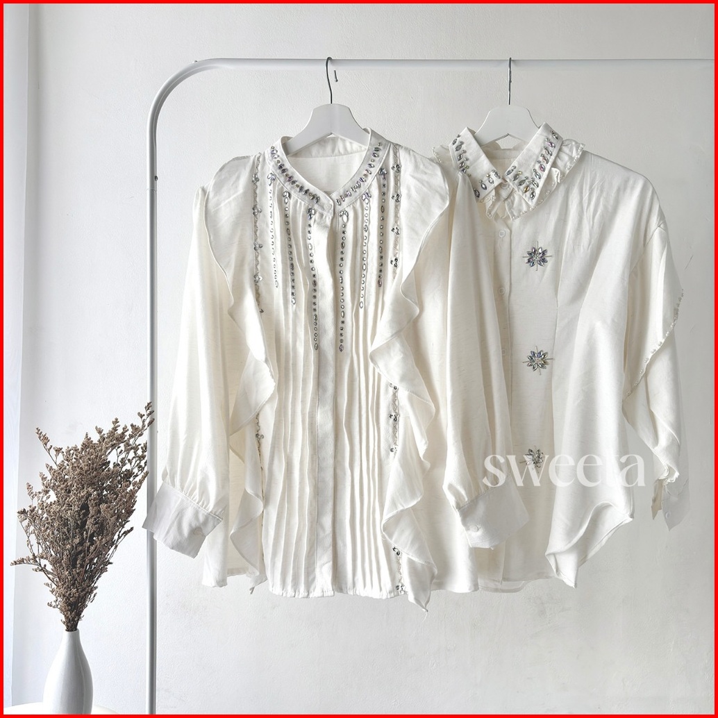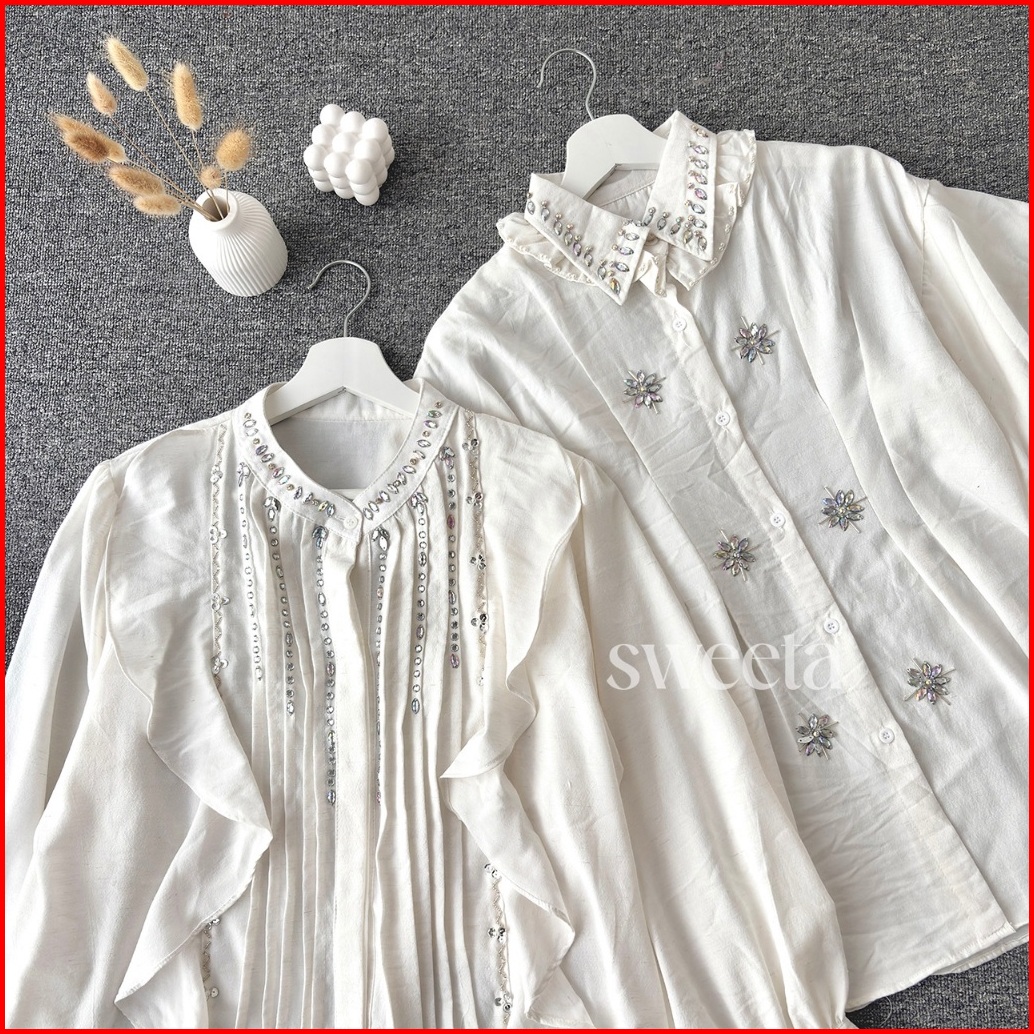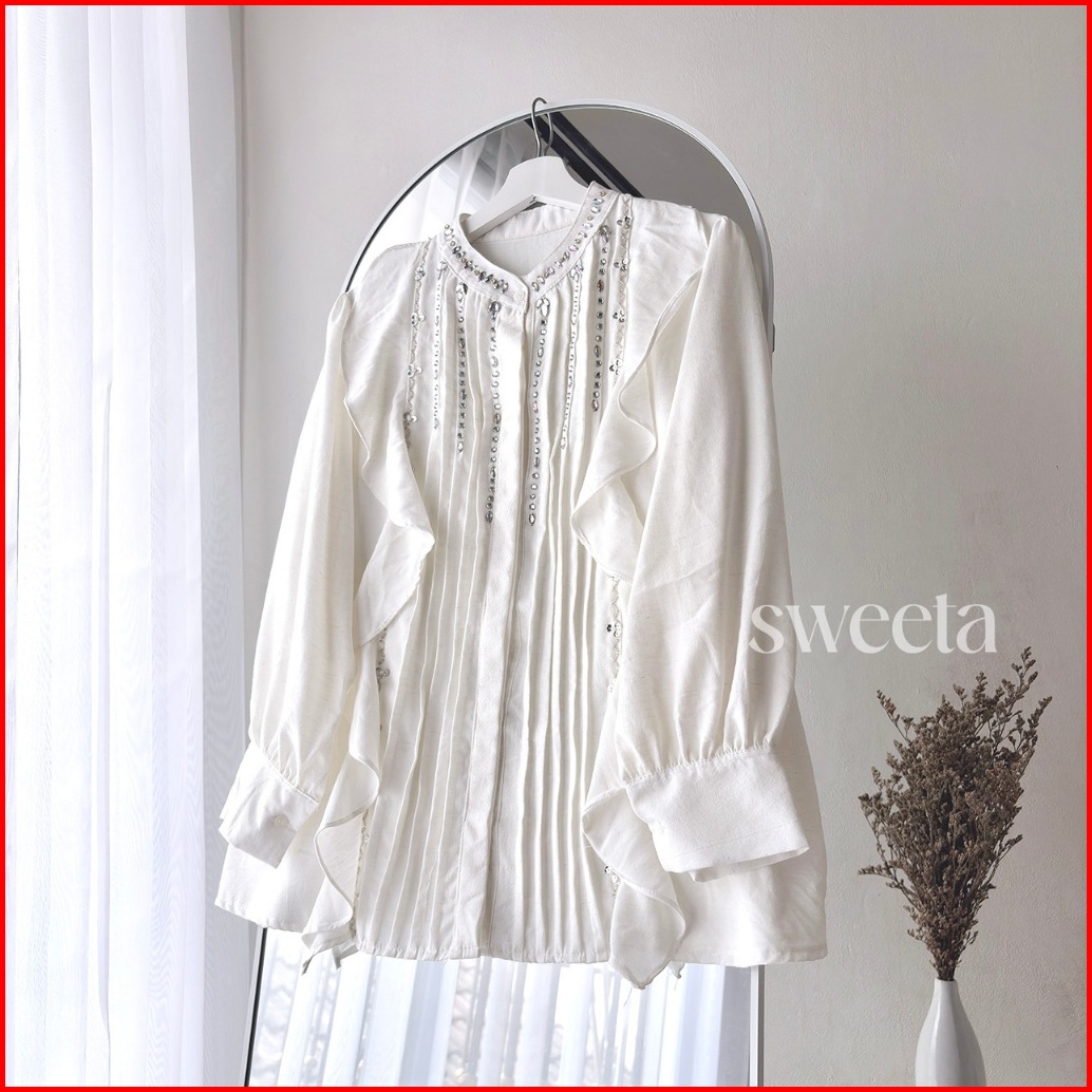 Sweeta Pearl Blouse Ruffle And Shirt Payet Mutiara Katun Ld 105 - 110 Atasan Wanita
