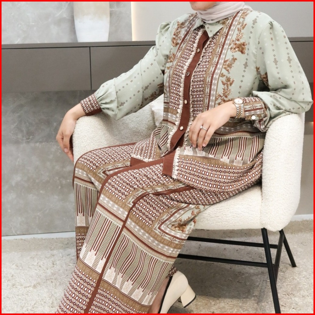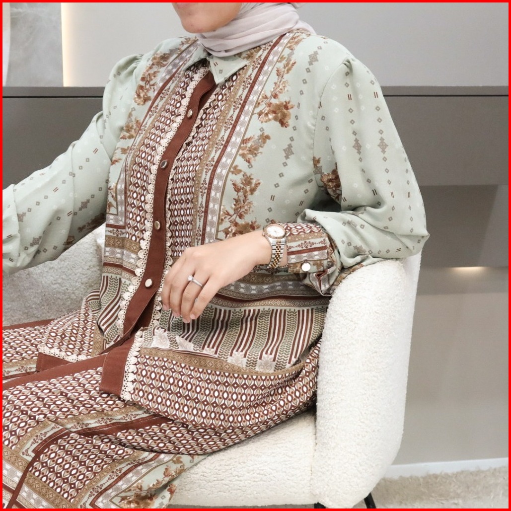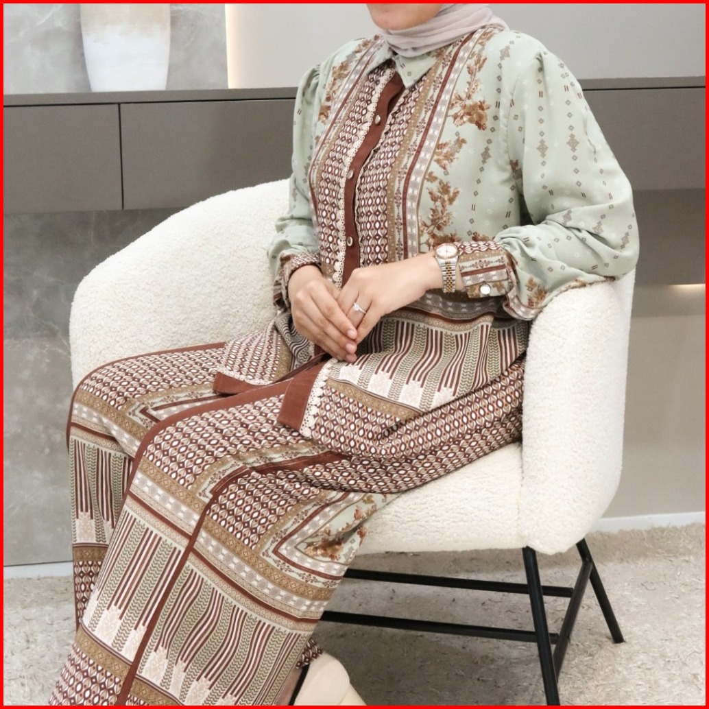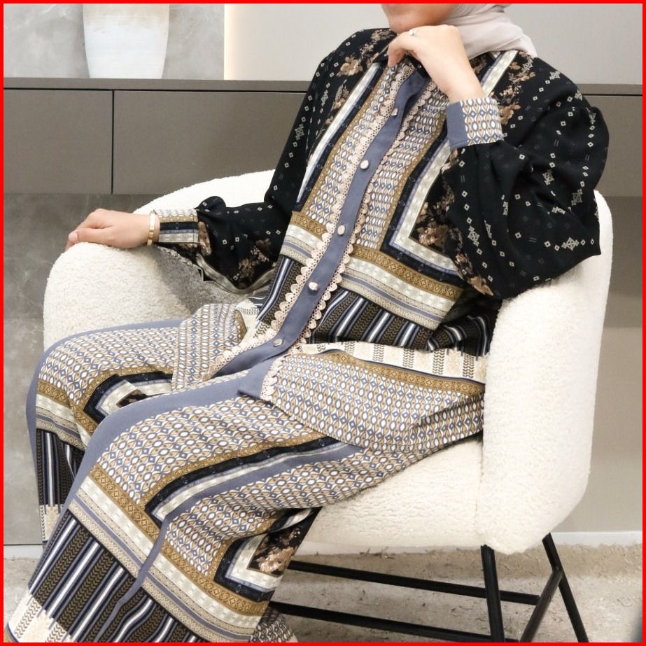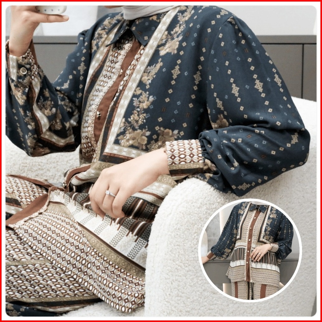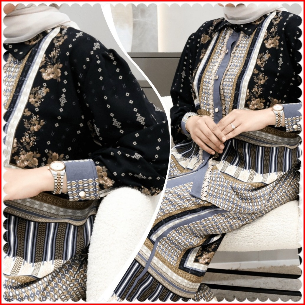 Irmalaila - Ivnia One Set Blouse Kemeja Kulot Panjang One Set Bahan Froise Motif Cantik Adem Dan Nyaman Aksen Renda