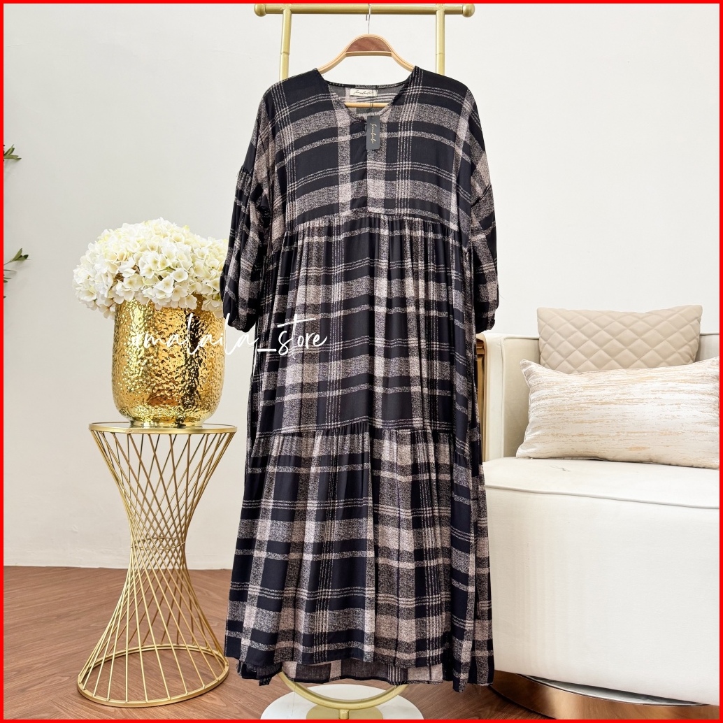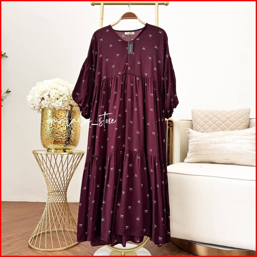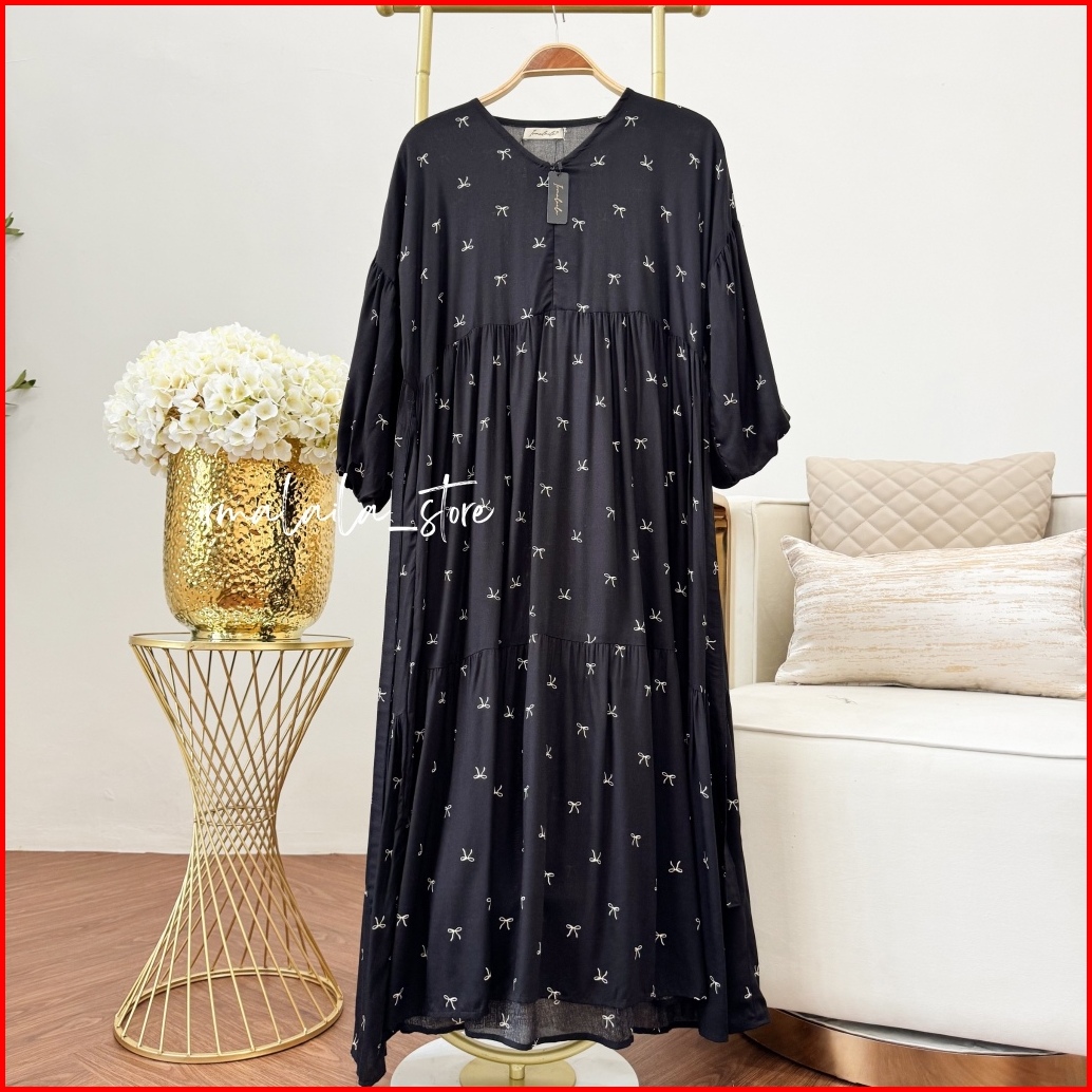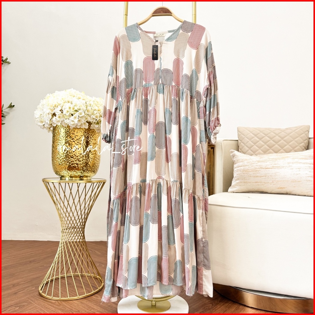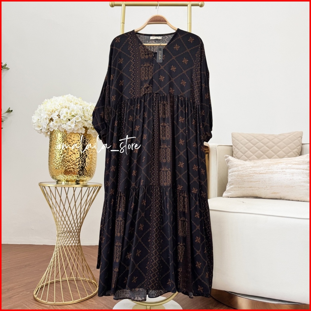Irmalaila - Laluna Dress Midi Rayon Motif Model Ruffle Lebar Mayung Cantik Elegan Nyaman Dress Daily