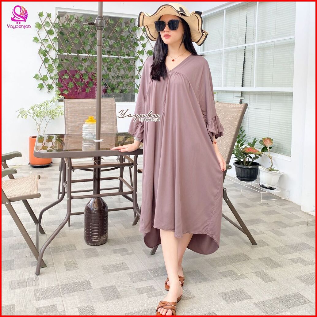 Fayola Dress Wanita Katun Rayon Polos Busui Friendly Homeydress Cantik Kekinian Terbaru Yayuku