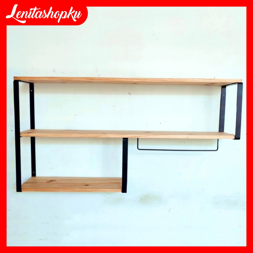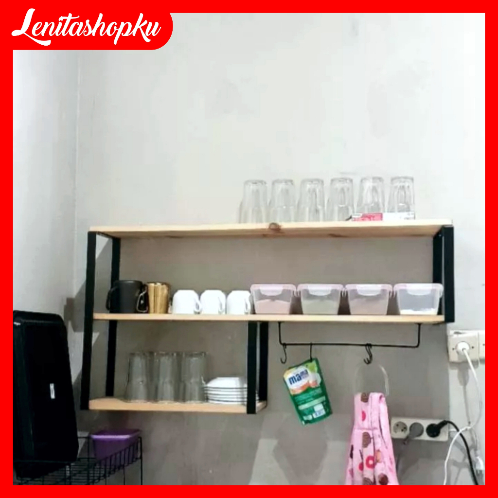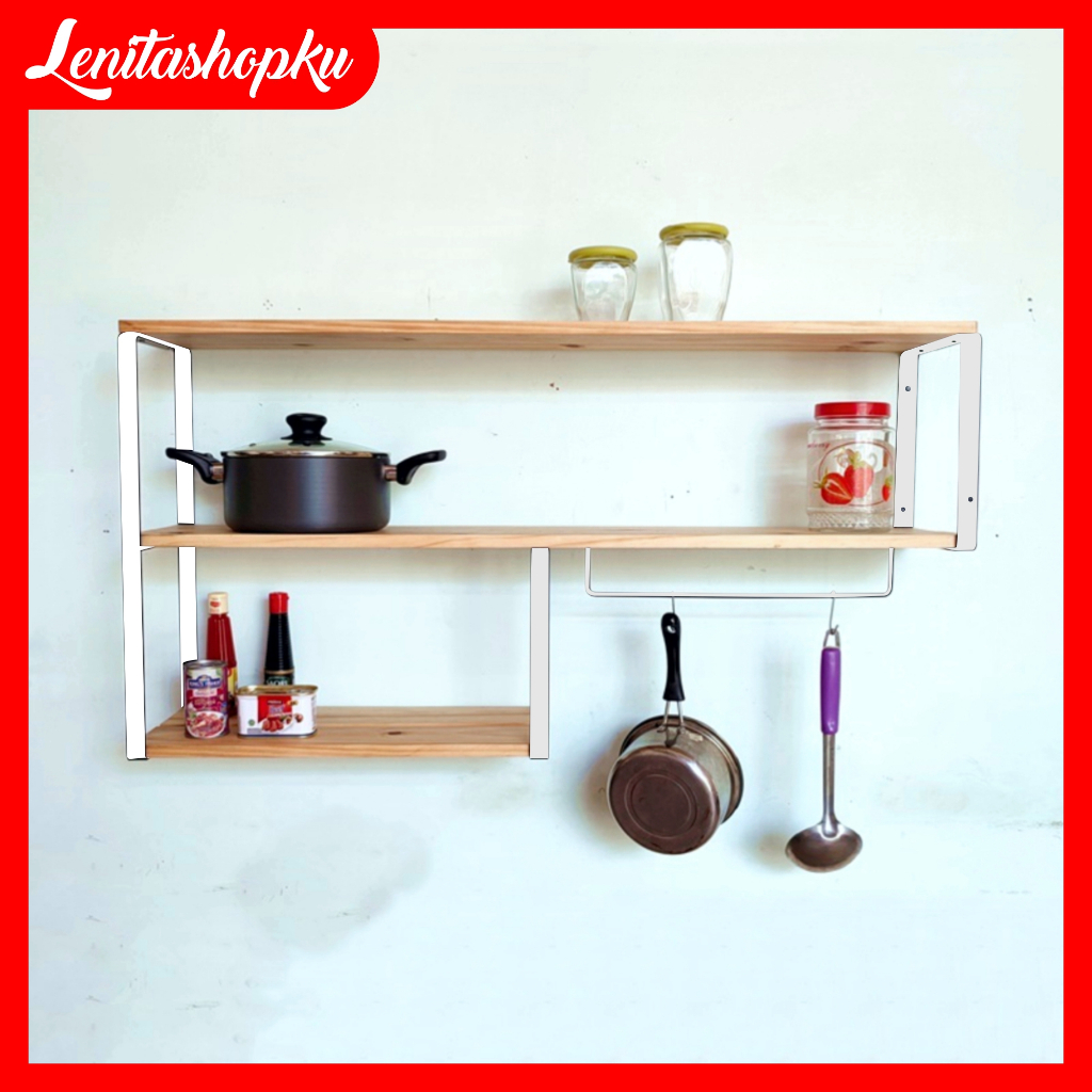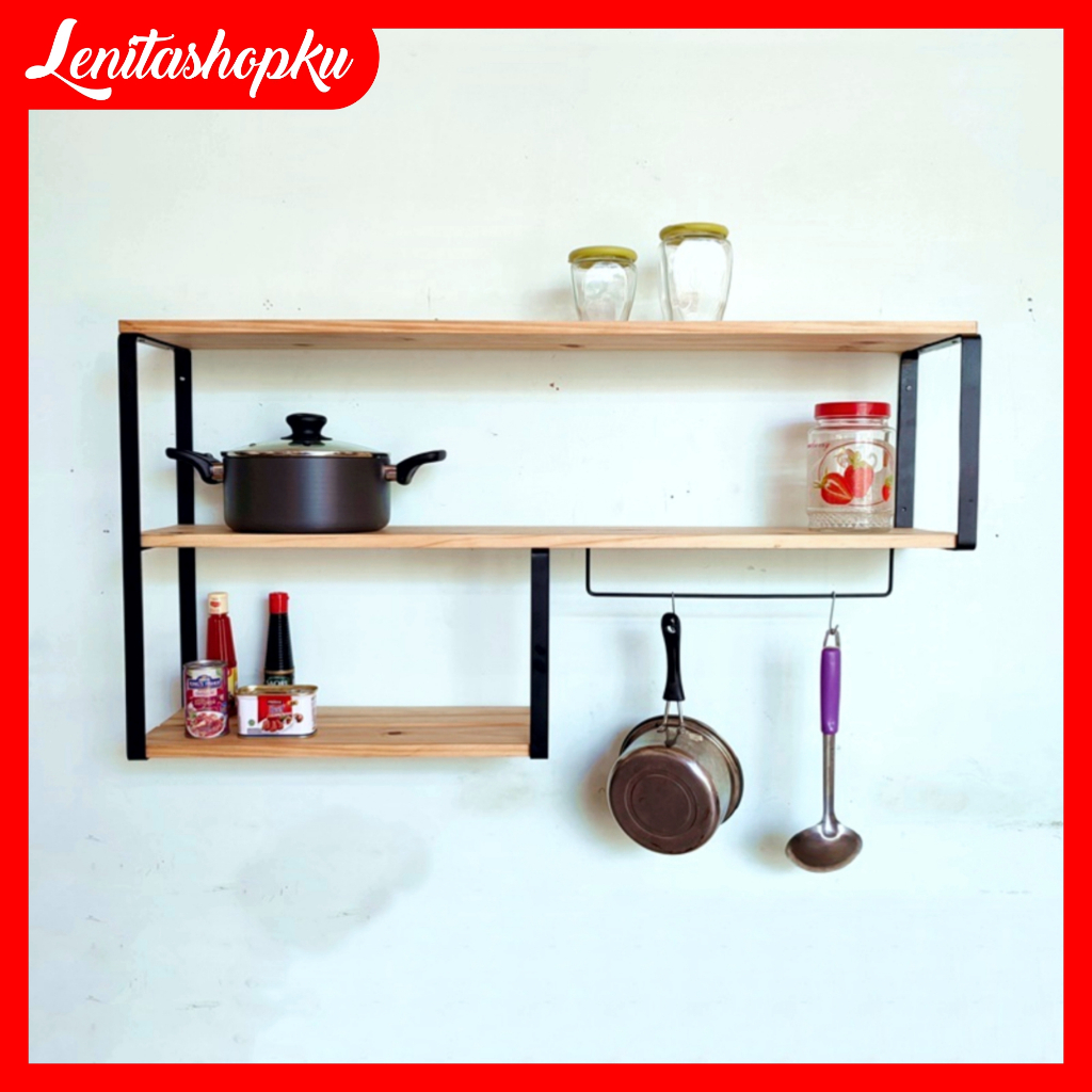 LENITASHOPKU RAK KAYU PENYIMPANAN PANCI DAN KUE RAK DAPUR 3 SUSUN AMBALAN KITHCEN SET TEMPEL DINDING RAK DINDING KAYU