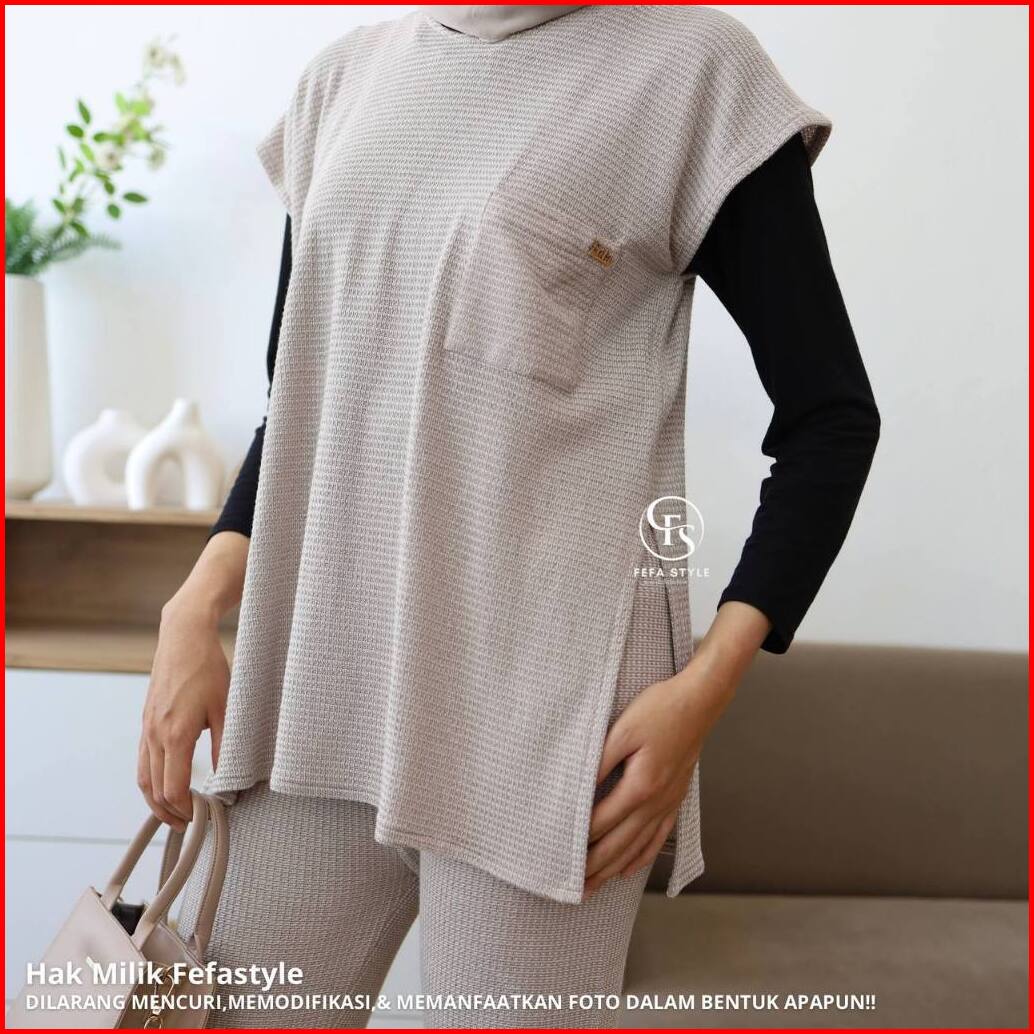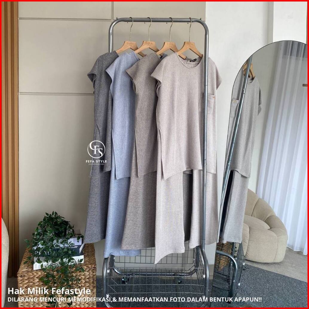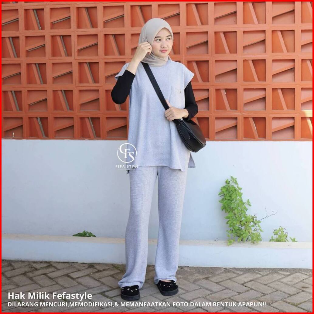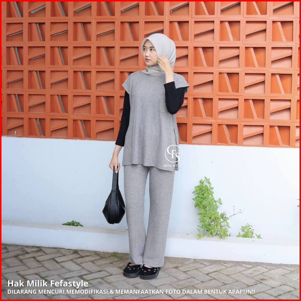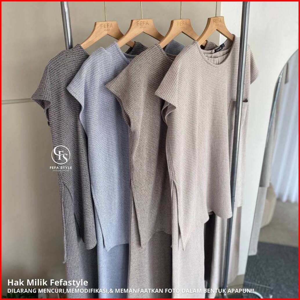 Fefa Style- One Set Nastya Knit - One Set Knit Lengan Oblong Celana Flare Pants Wanita - Atasan Bawahan Knit