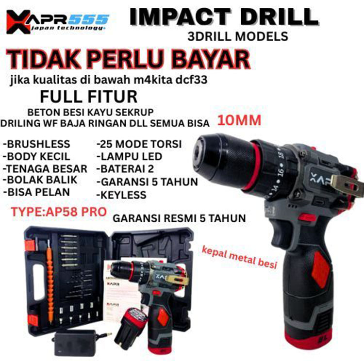 Big Promo Apr Raja Bor Impact Drill Brushless Type Ap85 Pro 10mm Keyless Auto Lock 2 Baterai Xapr