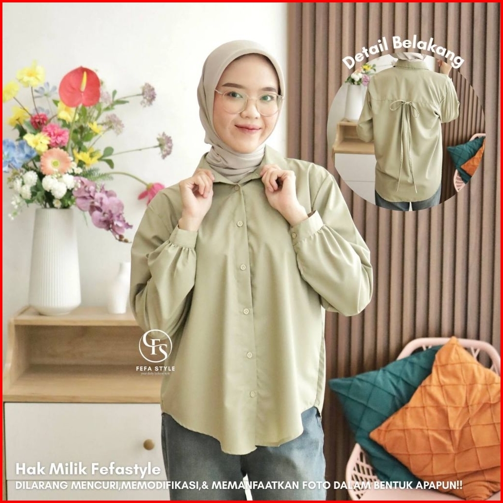 Fefa Style - Ruka Shirt - Atasan Kemeja Wanita - Kemeja Basic Polos Lengan Panjang