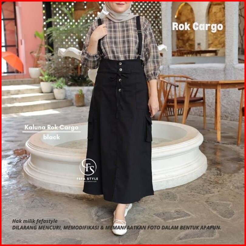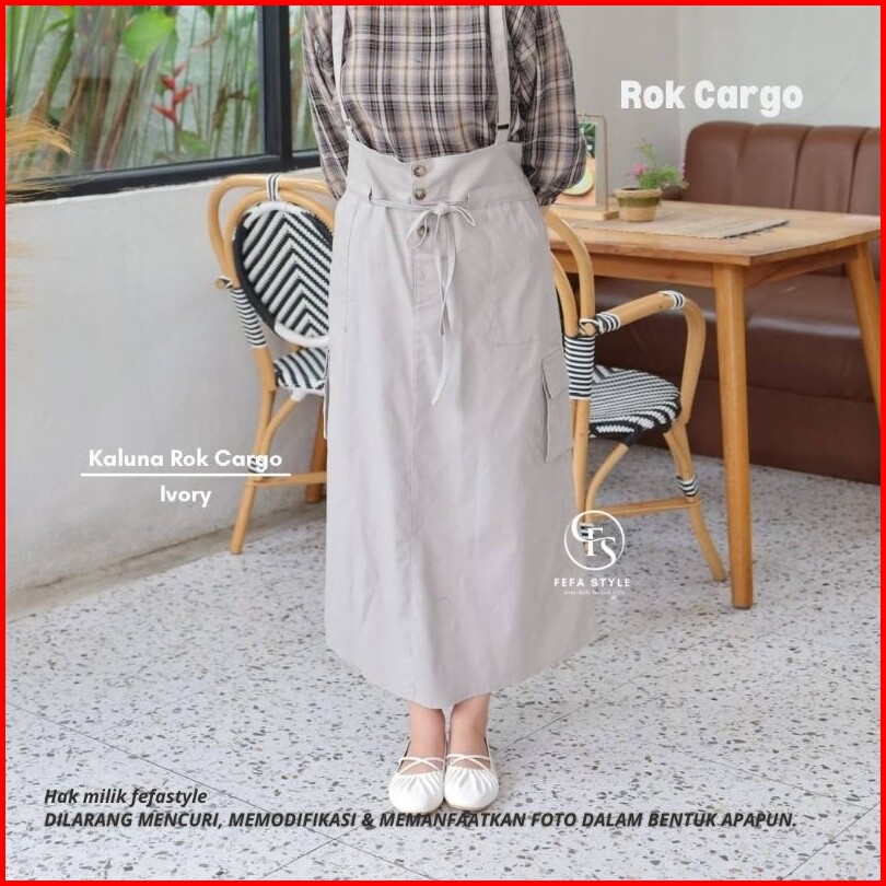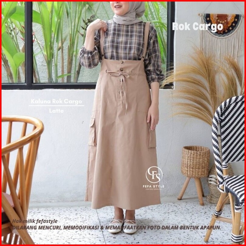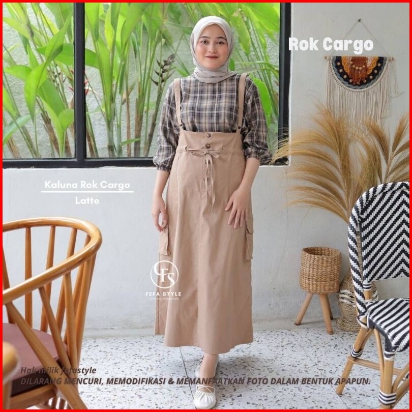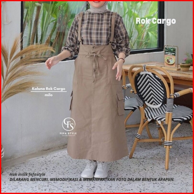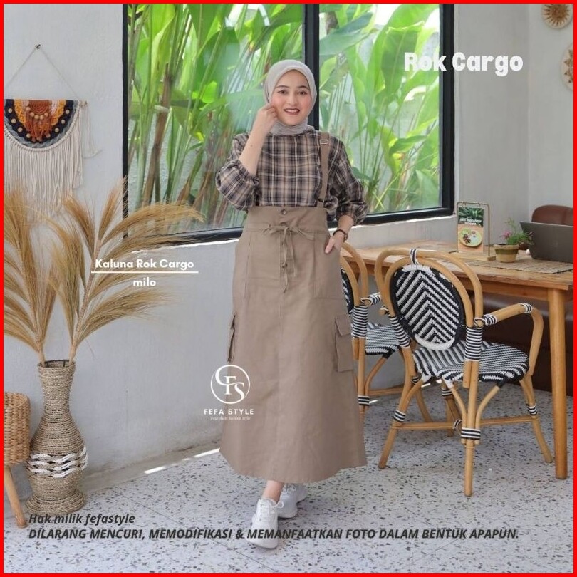 Kaluna Chinos Rok Overall Cargo By Fefastyle - Overall Wanita Rok Cargo Bahan Chinos Premium Tebal Anti Nerawang Dan Can