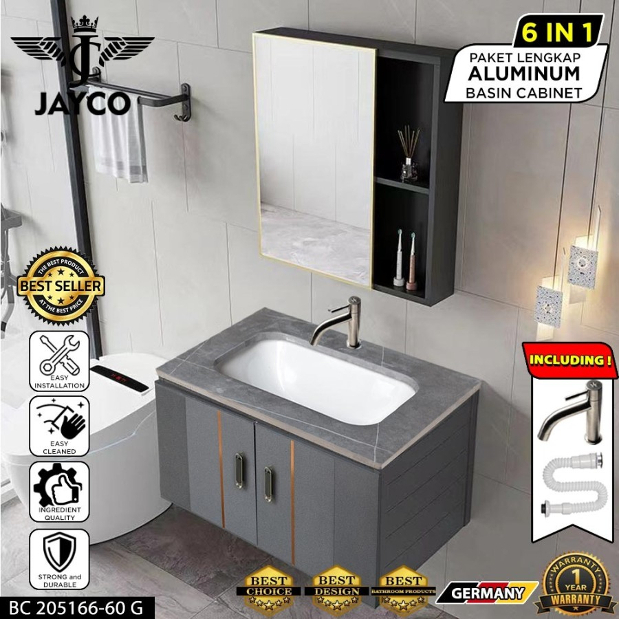 JAYCO WASTAFEL KABINET BASIN ALUMUNIUM RAK MINIMALIS 6 IN 1 UKURAN 60
