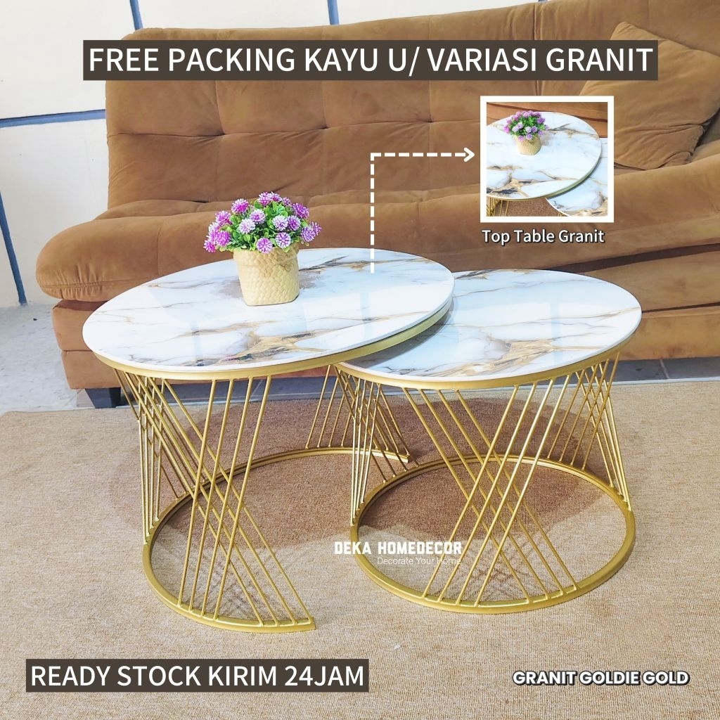 MEJA RUANG TAMU MINIMALIS CROSSY / MEJA TAMU GRANIT / MEJA INDUSTRIAL / MEJA TAMU BULAT AESTHETIC