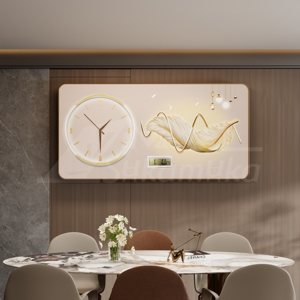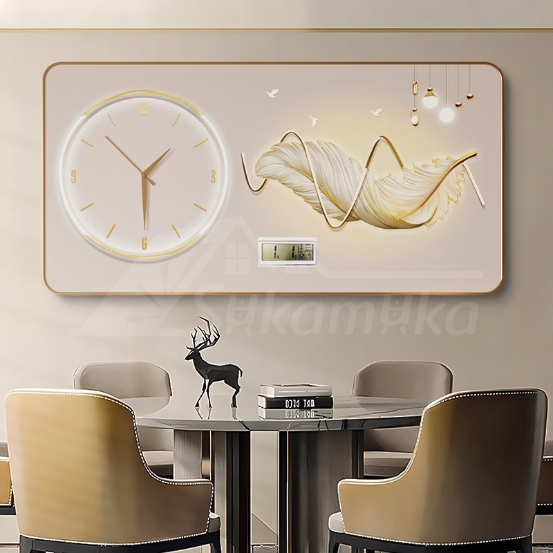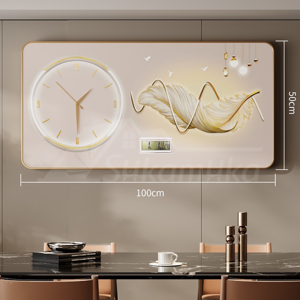 JAM DINDING MINIMALIS RUANG TAMU MEWAH BENTUK BULU JAM HIASAN DINDING AESTHETIC 100X50CM EM4S JAM DINDING MEWAH