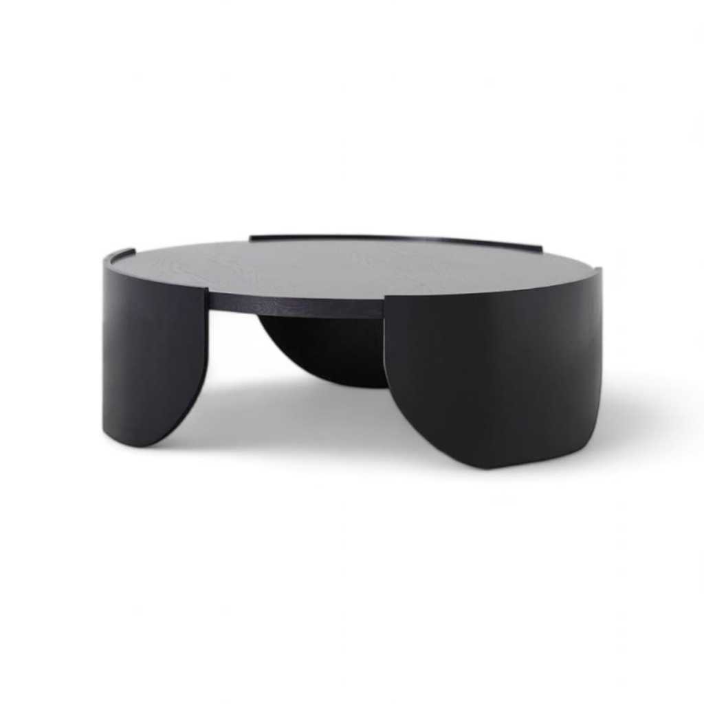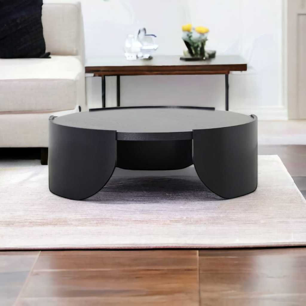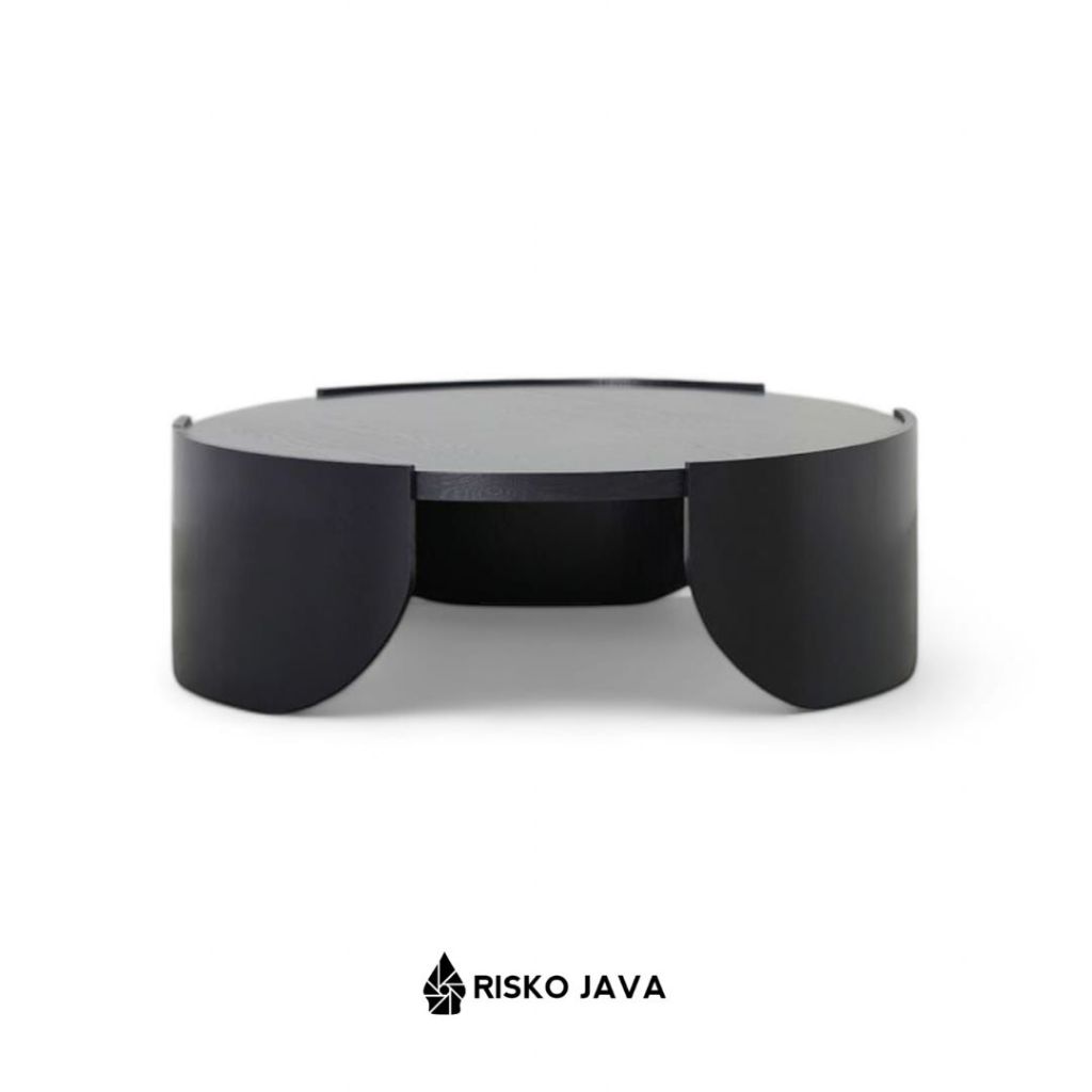 MEJA RUANG TAMU MINIMALIS / MEJA KAYU JATI BULAT / COFFE TABLE NATURAL BLACK TYREIK