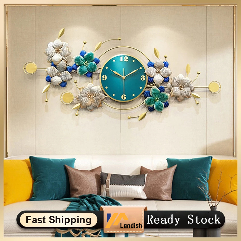 JAM DINDING METAL LUXURY DEKORASI DINDING JAM BUNGA DINDING GANTUNG RUANG TAMU BESAR UNIK JAM BISU DEKORASI MODERN