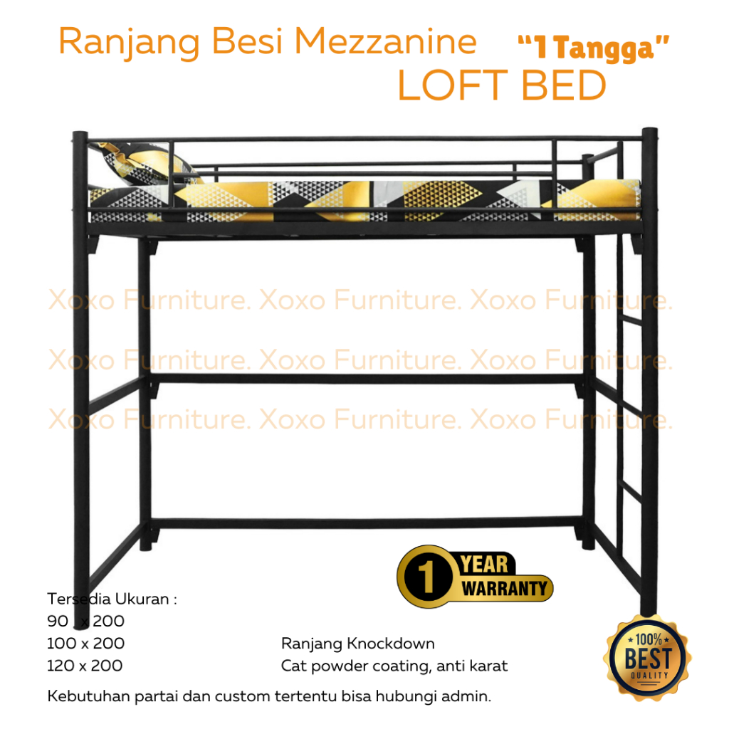 RANJANG TINGKAT ATAS KOLONG MEJA RANJANG MEZZANINE RANJANG LOFTBED SUSUN BESI LB