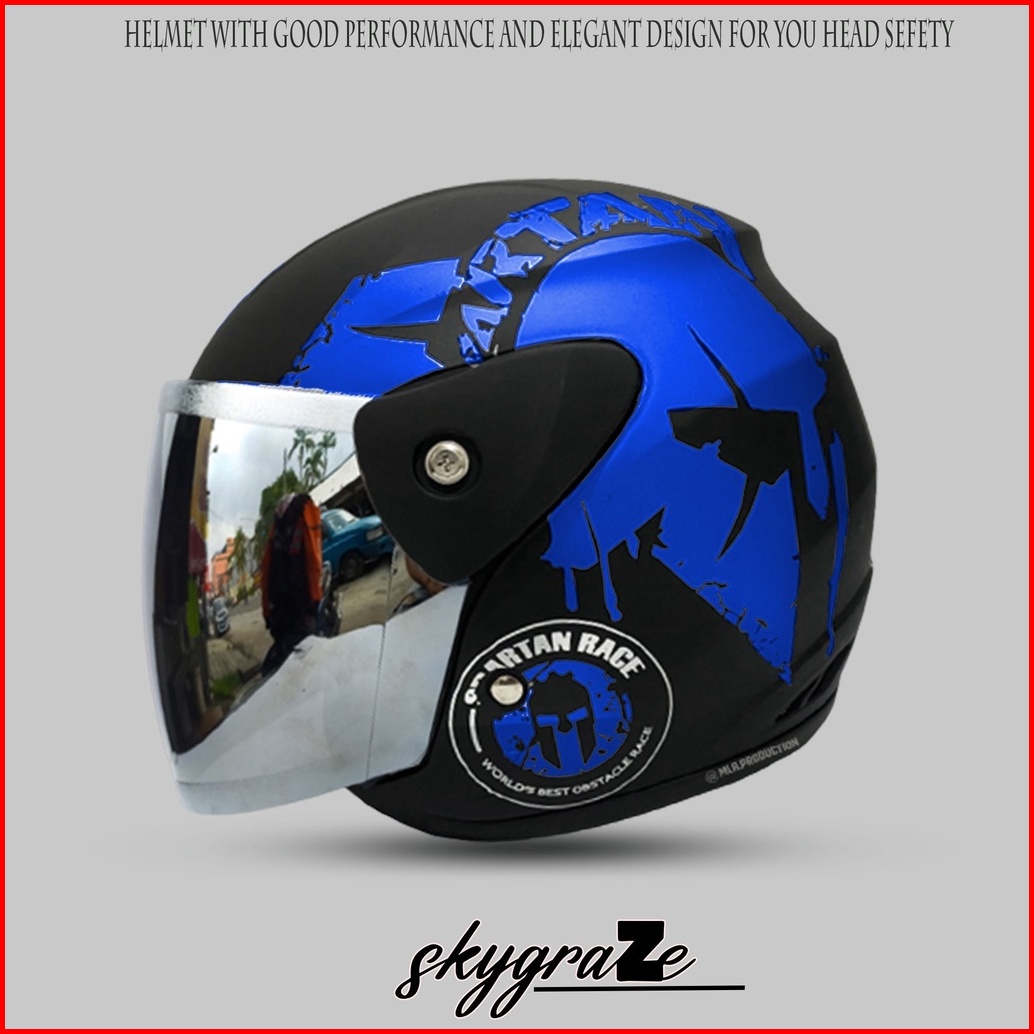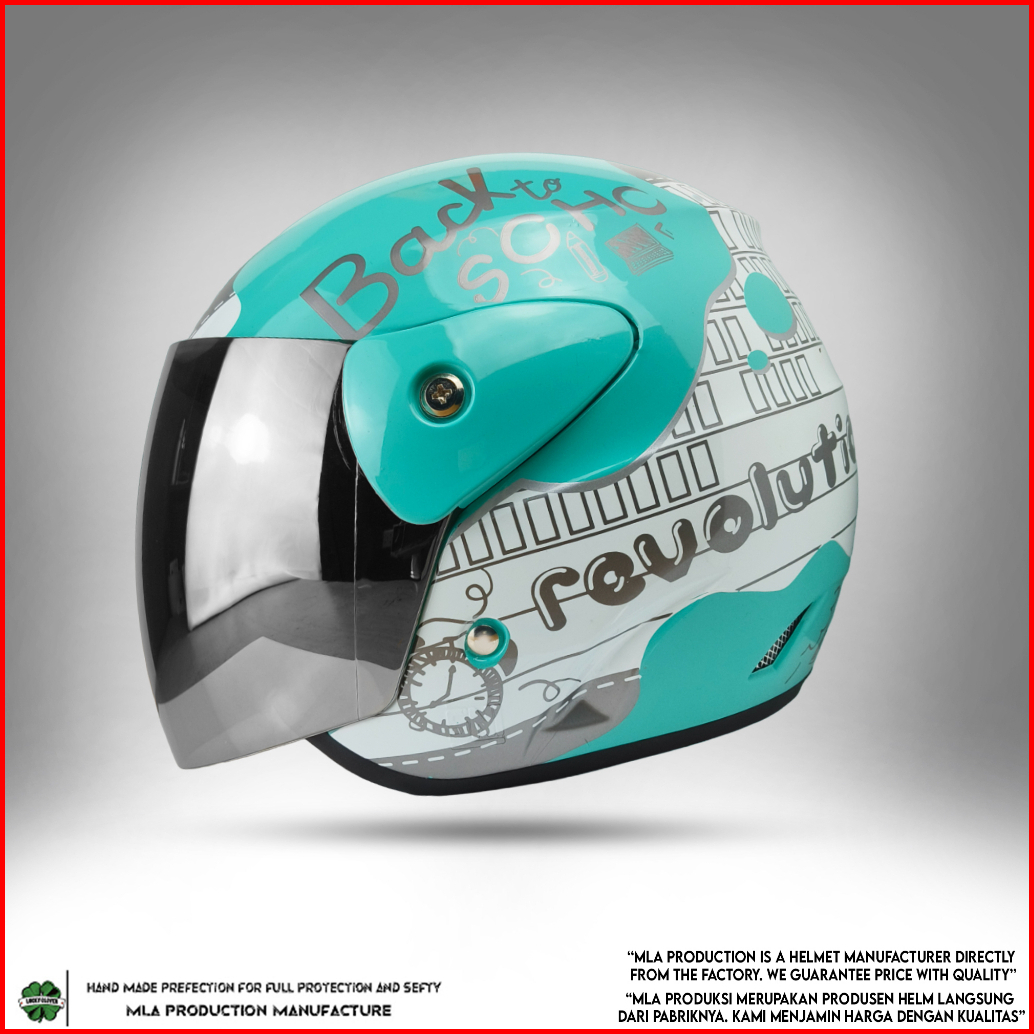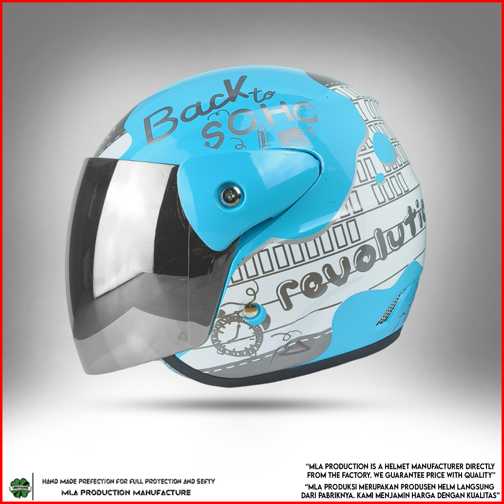 Helm Half Face Evo Motif Note Revolution Kaca Pelangi Silver Hitam Sni Original