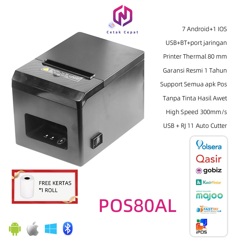 Auto Cutter Printer Thermal 80Mm Bluetooth+Usb+Rj11+Lan Port 80Mm Thermal Cash Receipt Pos Printer Free Kertas Printer1