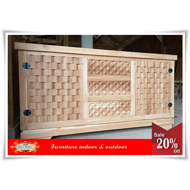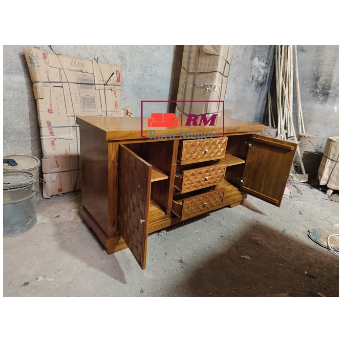 BUFET UKIRAN ANYAMAN MOTIF BUFET TV RUANG TAMU MINIMALIS DARI KAYU JATI