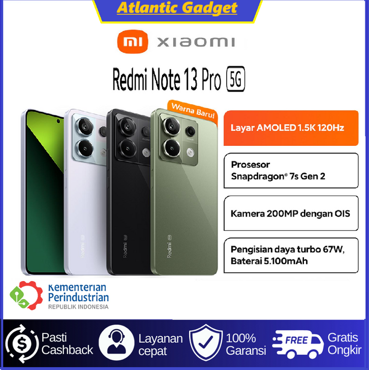 Hp Xiaomi Redmi Note 13 Pro 5G 8/256GB & 12/512GB Garansi Resmi | Snapdragon 7s Gen 2 | 200MP Triple Camera
