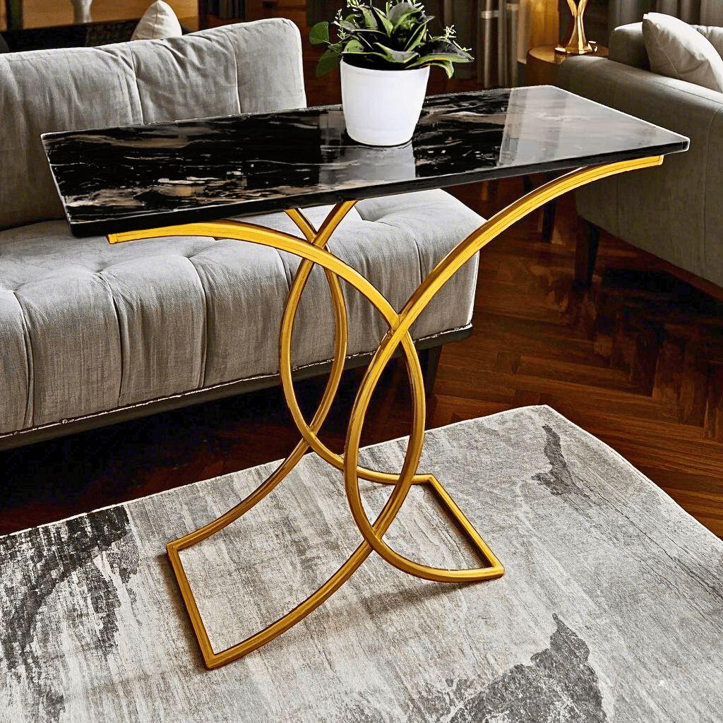 MEJA ESTETIK MINIMALIS RUANG TAMU DAN MEJA BELAJAR KONSOL MARMER ELEGAN CURVINA UKURAN 40CMX100CM