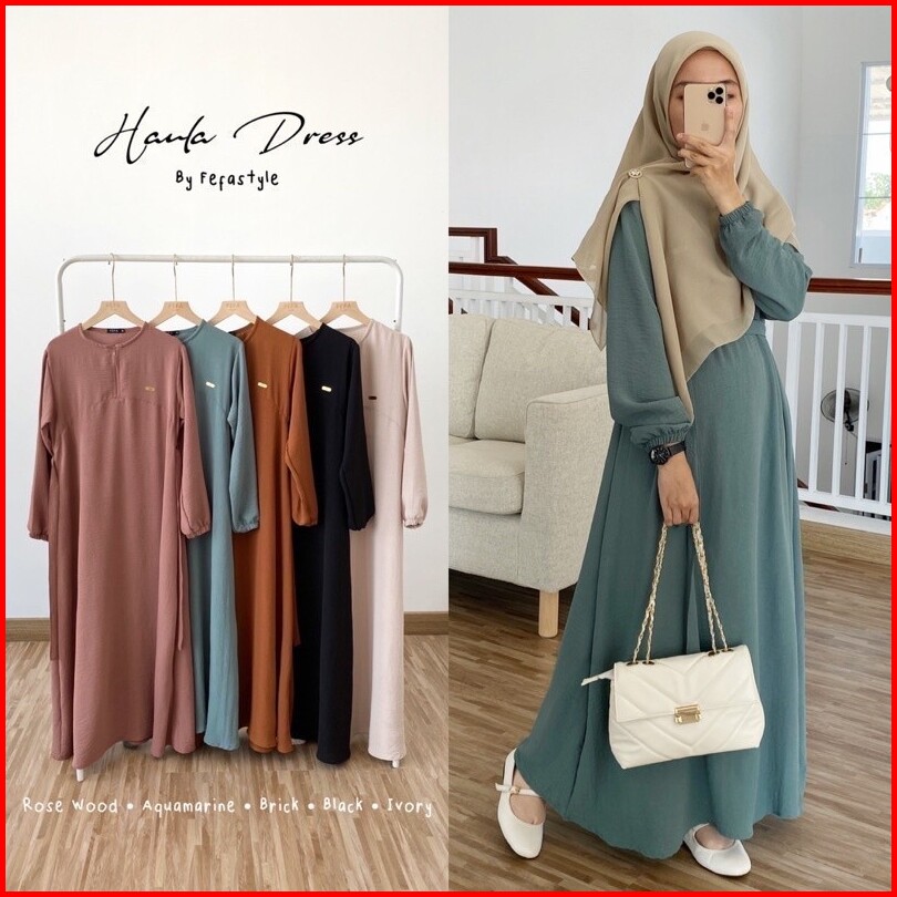 - Dress Wanita Kekinian Dress Model Slim Gamis Simple - Haula By Fefa Style