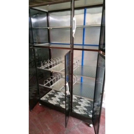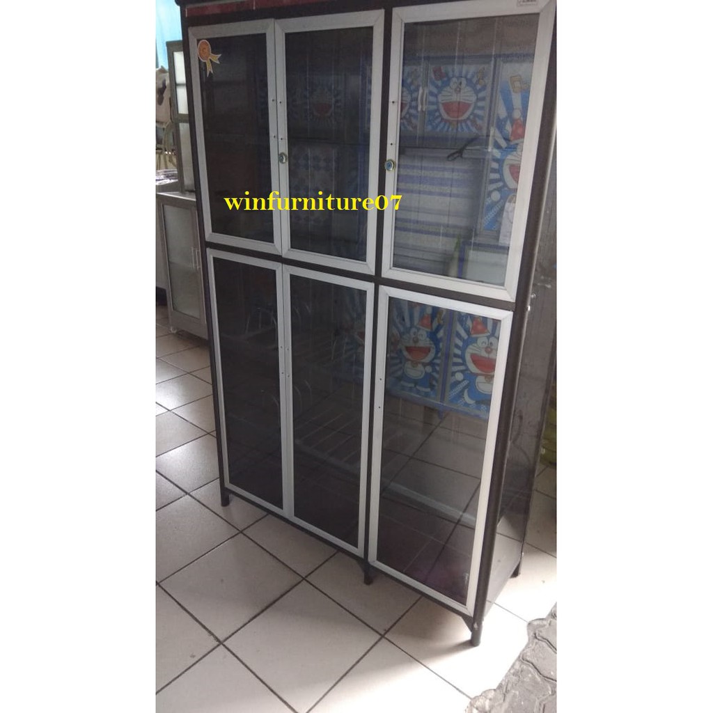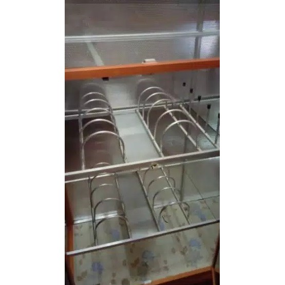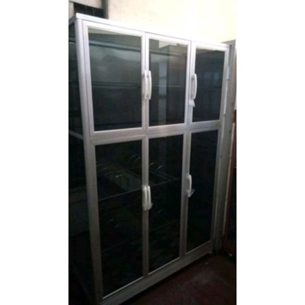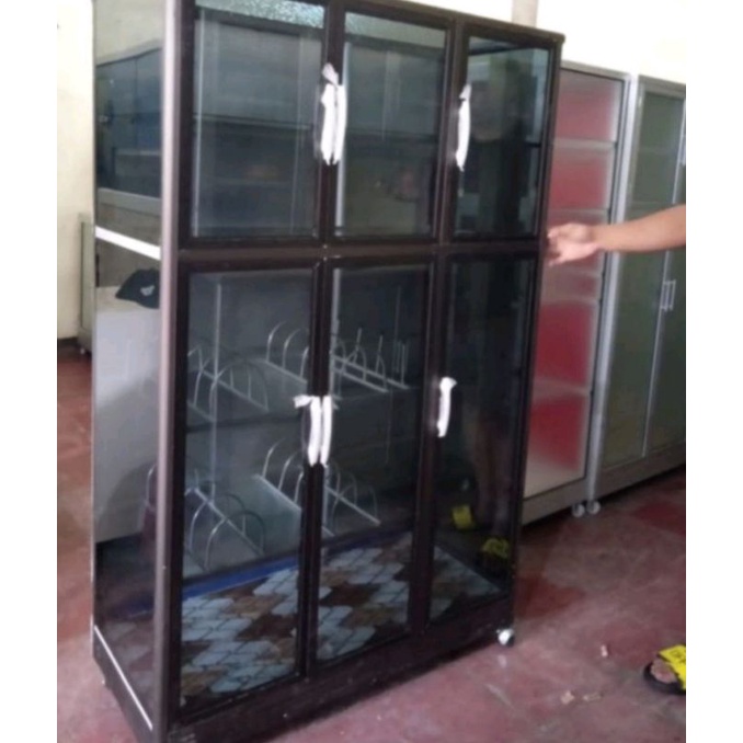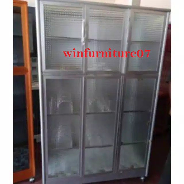 RAK PIRING 3 PINTU FULL BOX TIANG BESAR + KACA RIBEN