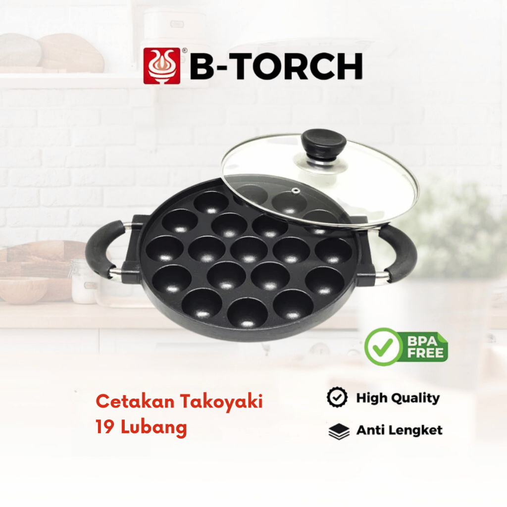 B-TORCH CETAKAN TAKOYAKI 19 LUBANG ANTI LENGKET + TUTUP KACA