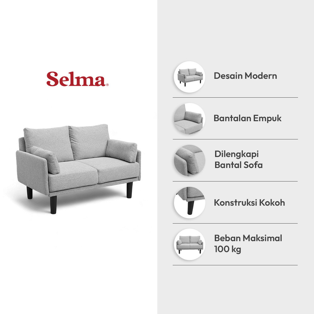 SELMA TIMMO SOFA FABRIC 2 SEATER ABU-ABU TEMPAT DUDUK EMPUK SOFA RUANG TAMU FURNITURE INDOOR RUMAH FABRIC COUCH