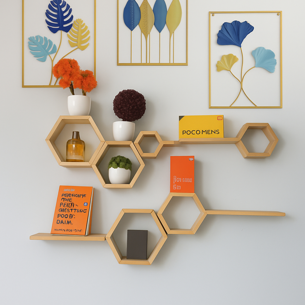 HIASAN DINDING HEXAGONAL AMBALAN KAYU TEMPEL MINIMALIS AESTHETIC RAK DINDING HEKSAGONAL UNTUK KAMAR TIDUR DAN RUANG