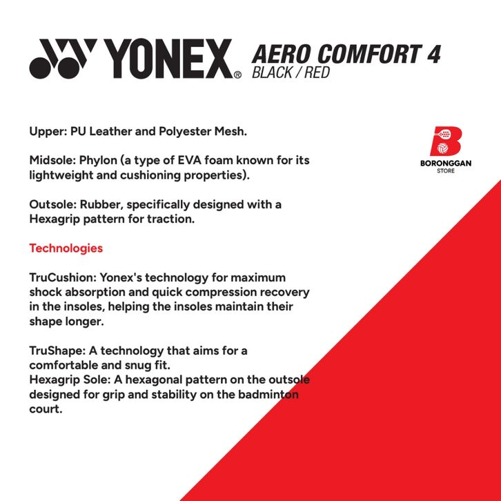 Sepatu Badminton Yonex Aero Comfort 4 | Black / Red | Bulutangkis | 100% Original