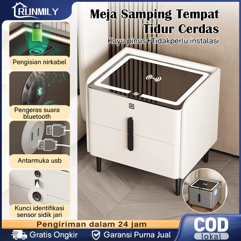 MEJA NAKAS 25/45CM WIRELESS CHARGING SMART FINGERPRINT BLUETOOTH SPEAKER MEJA SUDUT NAKAS MEJA SAMPING BEDSIDE TABLE