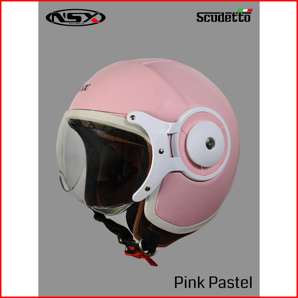Helm Retro Hijab Friendly Nsx Half Face Solid Pink Pastel Helm Dewasa Kekinian Wanita Terbaru Sni
