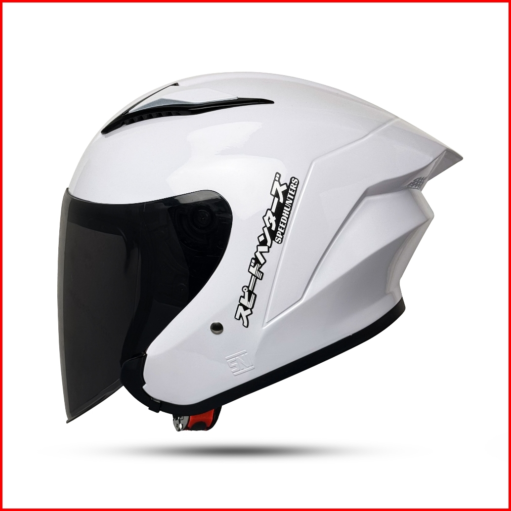 Helm Half Face Mjm Batman Hitam Glosy Kaca Iridium Hitam Silver Terbaru Sni