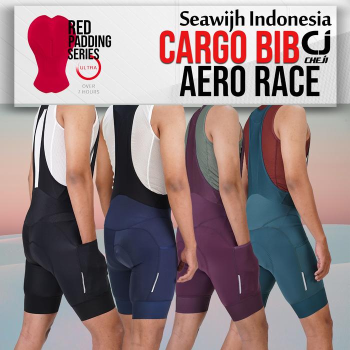 Celana Padding Sepeda Saku Bib Cargo Cheji Side Pocket Aero Race Cycling Gravel Original - Black, S