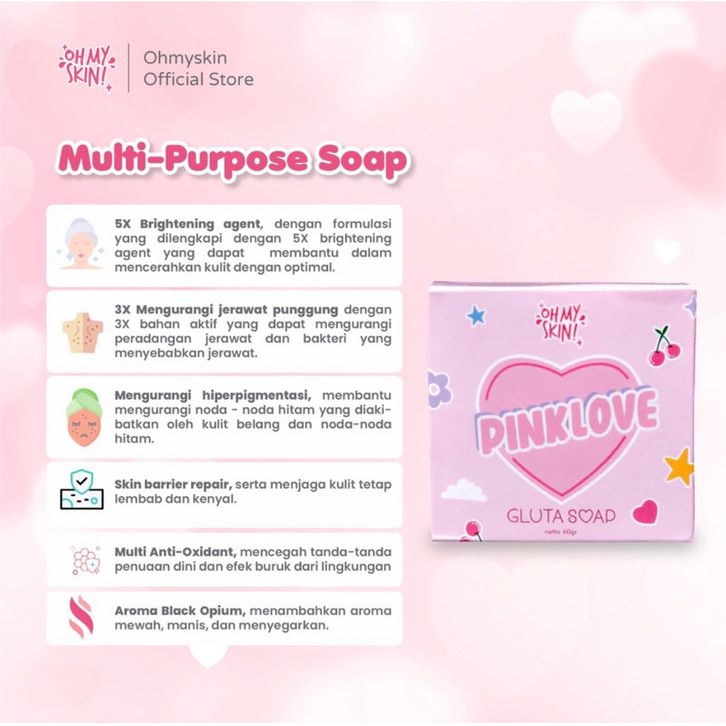 GLUTA SOAP BY OHMYSKIN PINK LOVE SABUN BRIGHTENING BADAN WAJAH GLUTASOAP SABUN PENCERAH BY OH MY SKIN