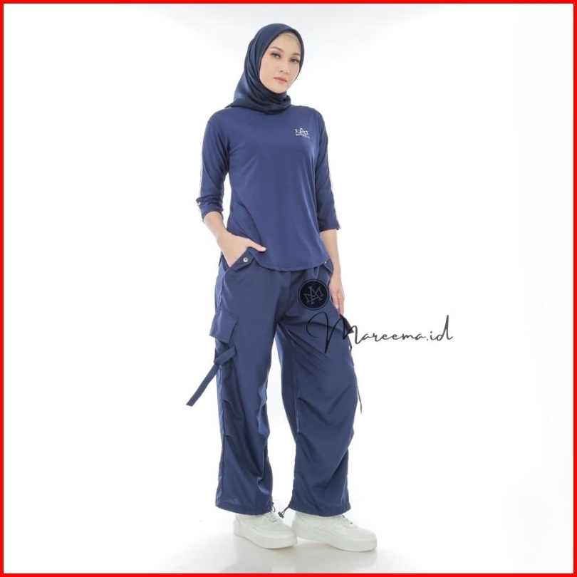 Celana Perasut Cargo Olahraga Sport Pants Wanita Korea Jumbo Highwaist Muslim Terbaru Kekinian