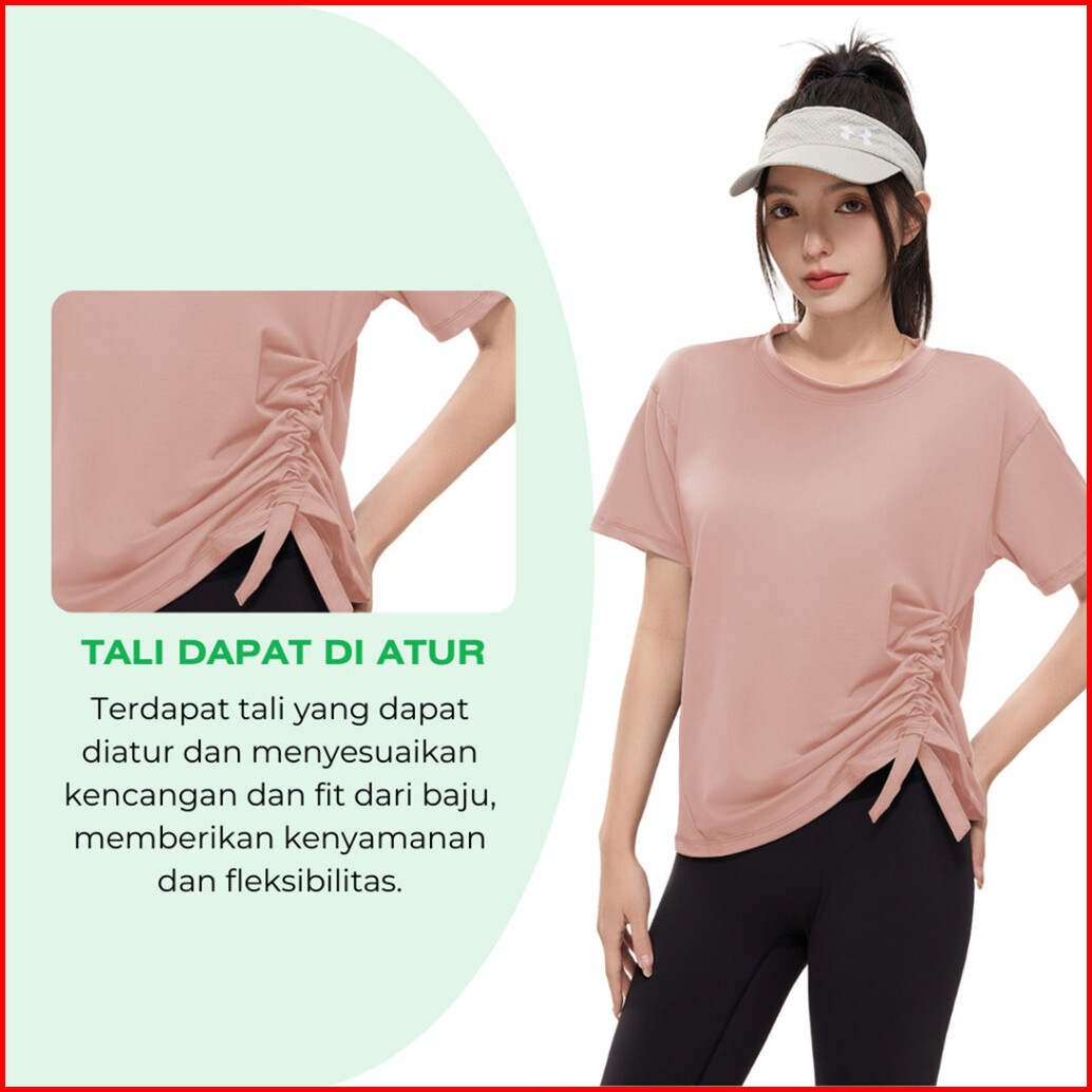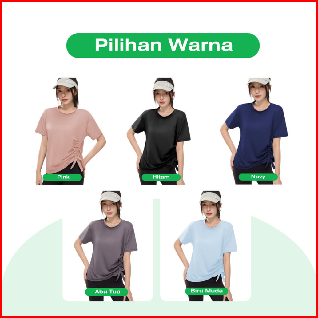 Kktop Atasan Wanita Kekinian Terbaru Baju Olahraga Wanita Lengan Pendek Serut Samping Kaos Blouse K006