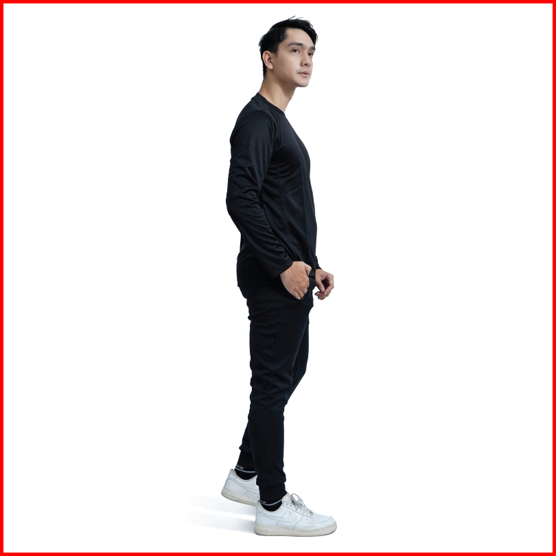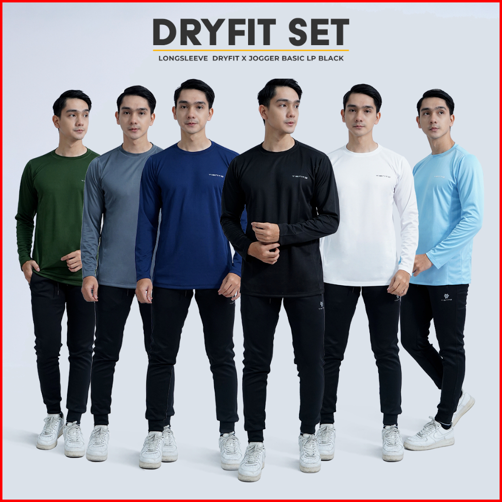 Tiento Setelan Olahraga Kaos Lari Dry Fit Lengan Panjang Baju Running Tiento Celana Jogger Panjang Long Pants Joger Basi