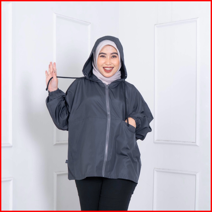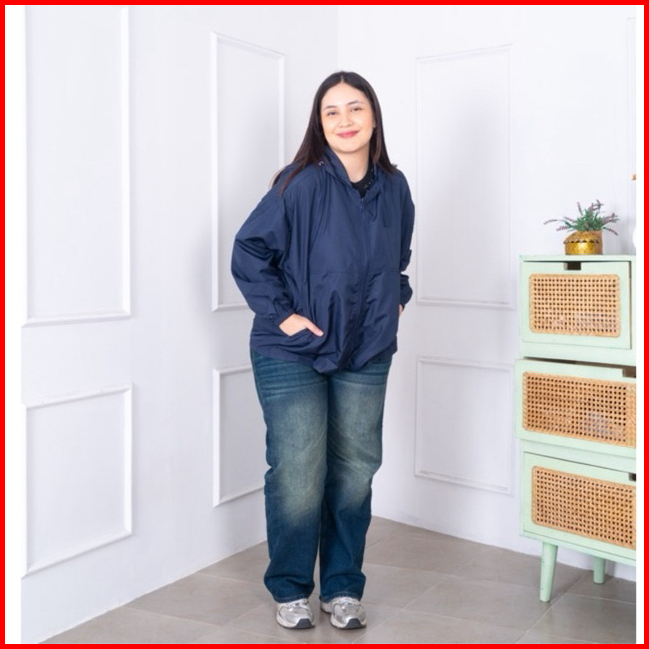 Zave - Kalee Jacket Wanita Double Pocket Windbreaker Nilon Oversized