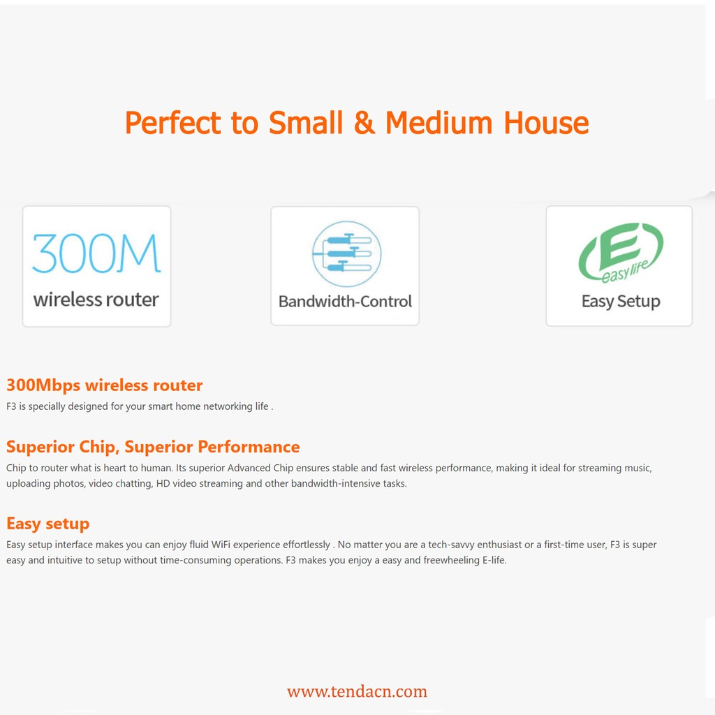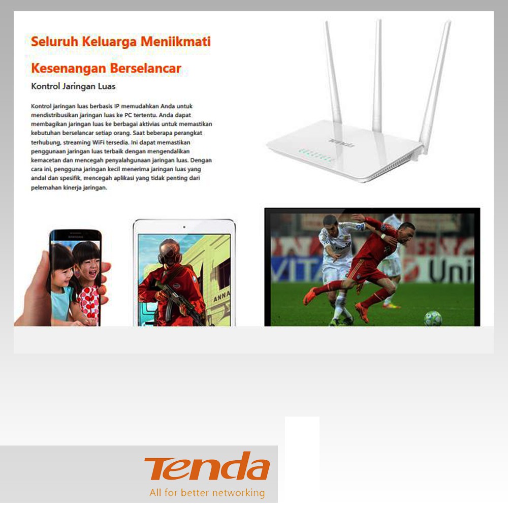 Tenda F3 Router 300Mbps Tembus Tembok Kuat, Smart Management, Setup 30 Detik, Antena 5dBi High Power