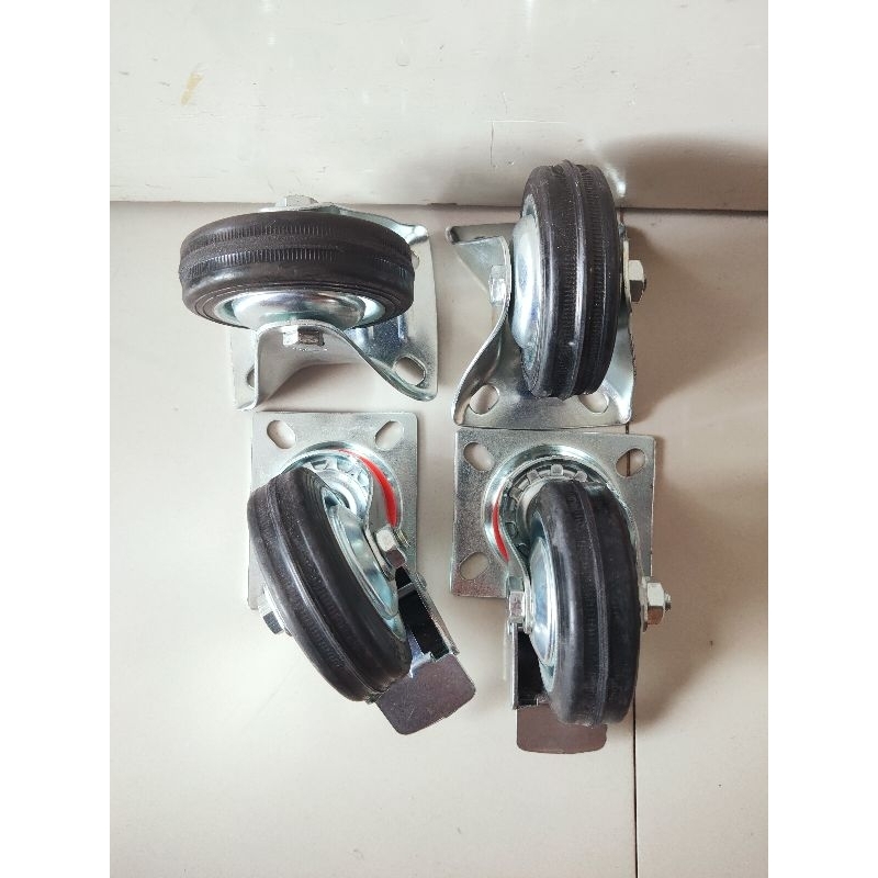 Paket Roda Gerobak 3" Karet Hitam 2 Rem 2 Mati Roda Troli Set 4Pcs 3In Trolley Wheel Roda Grobak