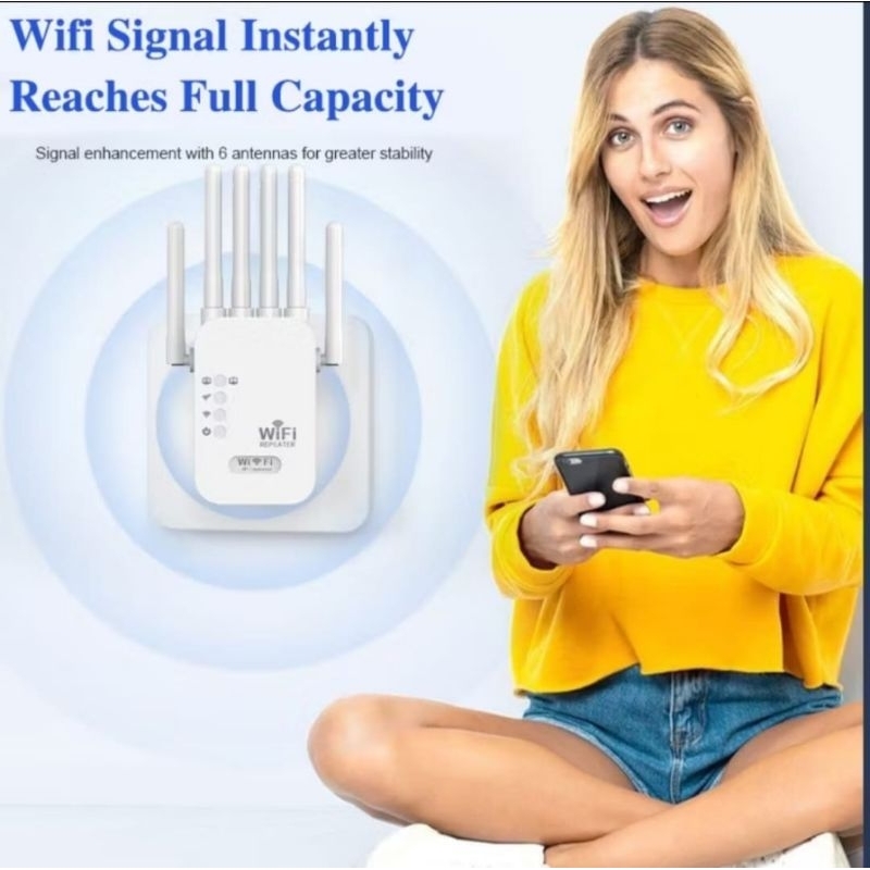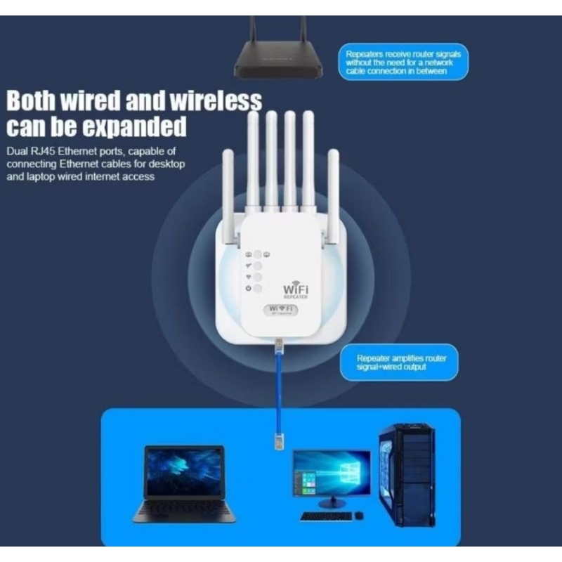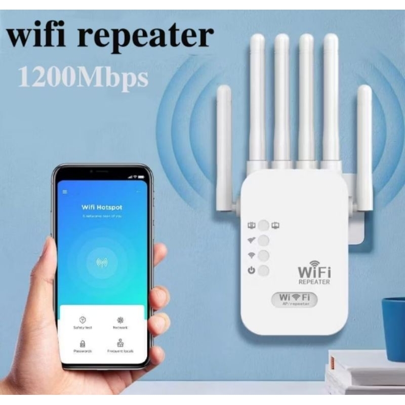 6 Antena Kuat WiFi Repeater Penguat Sinyal Wifi 1200Mbps Wireless WiFi Signal Range Extender Signal Booster