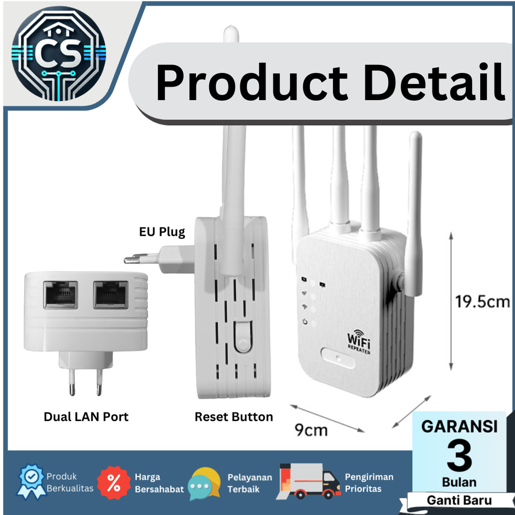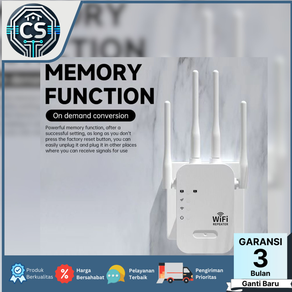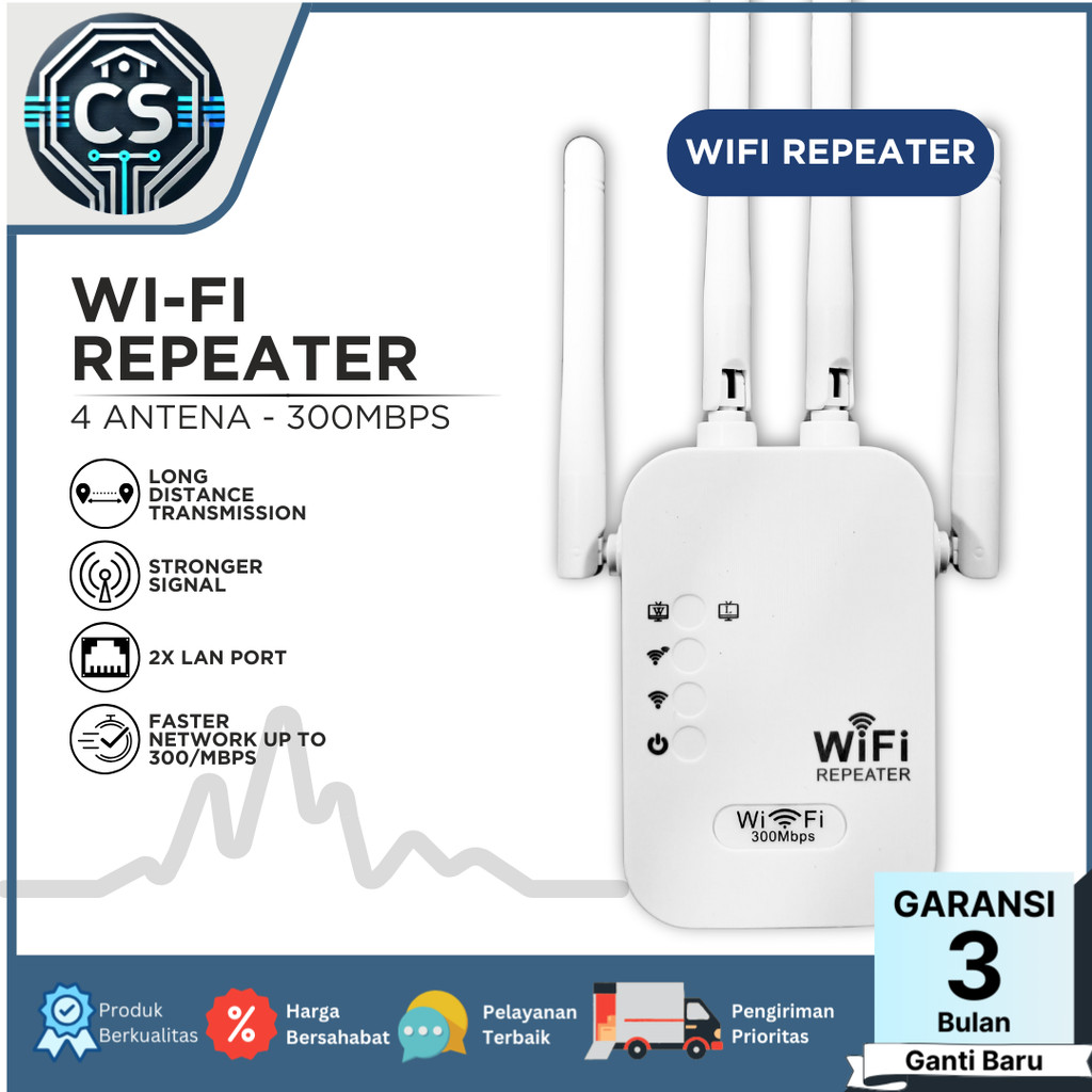 Wifi Repeater Extender 300Mbps 4 height Gain Antena Penguat Signal Garansi Resmi