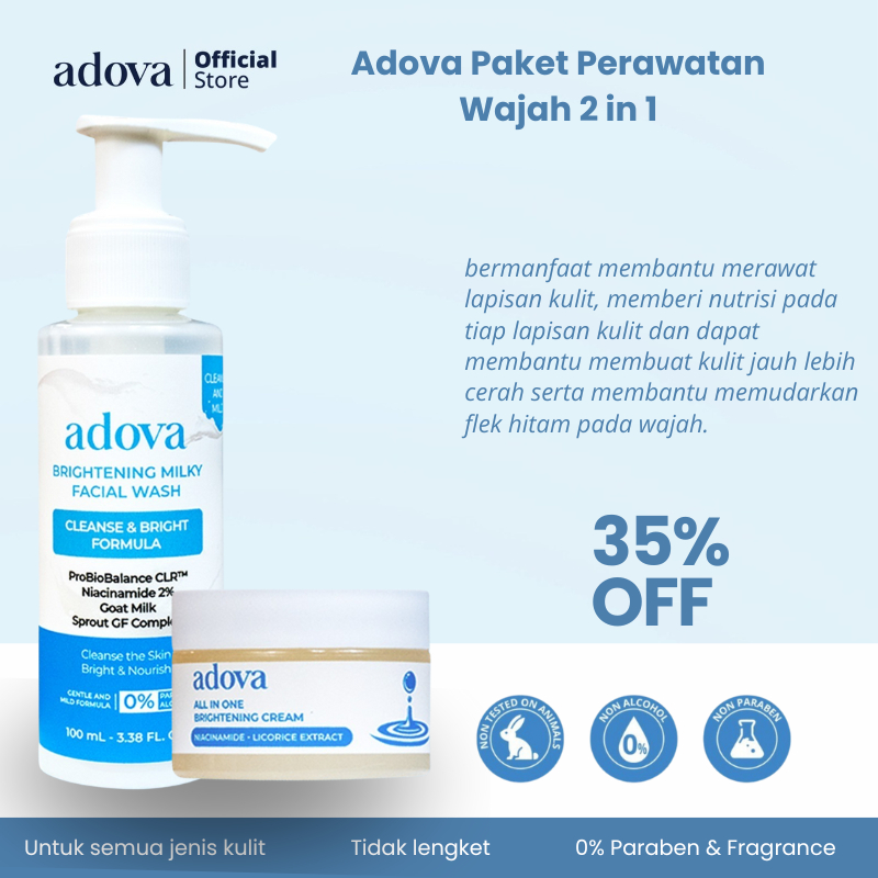 ADOVA Paket Brightening Facial Wash dan Moisturizer