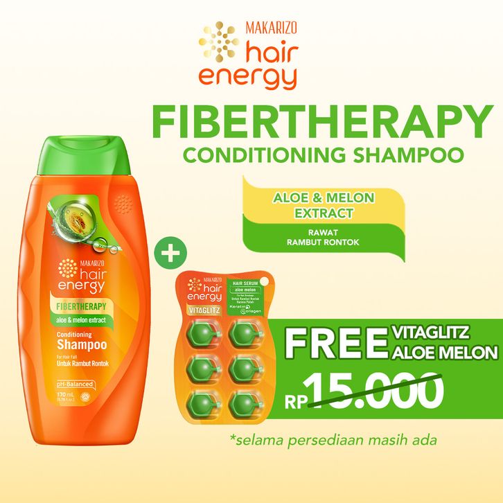 Shampo Anti Ketombe [BUY 1 GET 2] Makarizo Hair Energy Fibertherapy Conditioning Shampoo Aloe & Melon 170 mL
