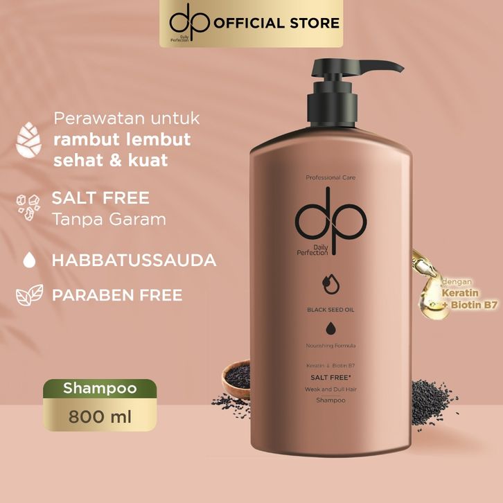 Shampo Anti Ketombe DP Daily Perfection Shampoo Habbatussauda Nourishing Formula 800 ml - Salt Free Shampo Bebas Garam S